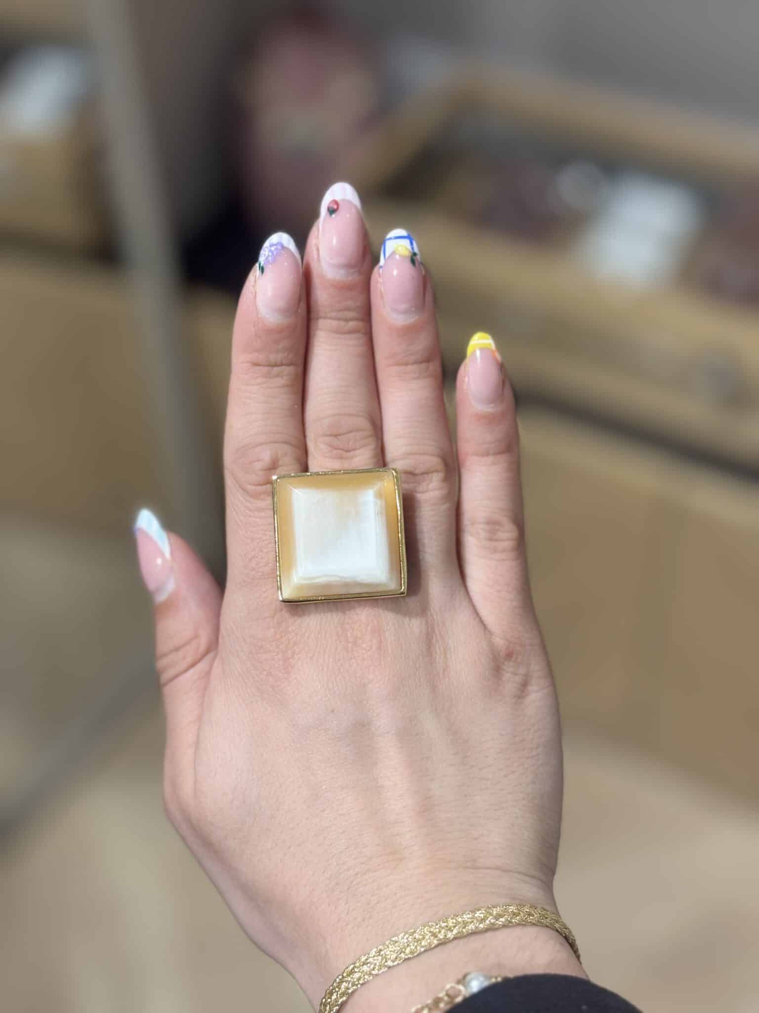 Les bagues Soyang Paris séduisent par leur design audacieux et leurs matières naturelles. Confectionnées en corne véritable et laque, elles offrent un rendu unique : chaque pièce présente de légères variations, faisant de chaque bague un bijou singulier.