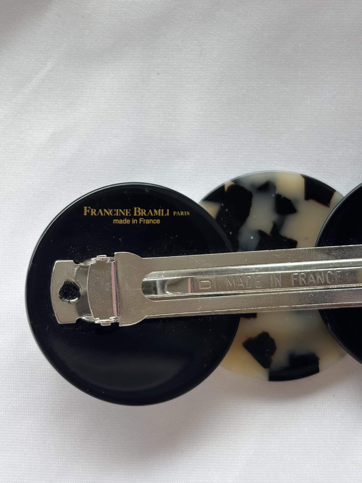 La barrette est livrée avec une pochette estampillée Francine Bramli.