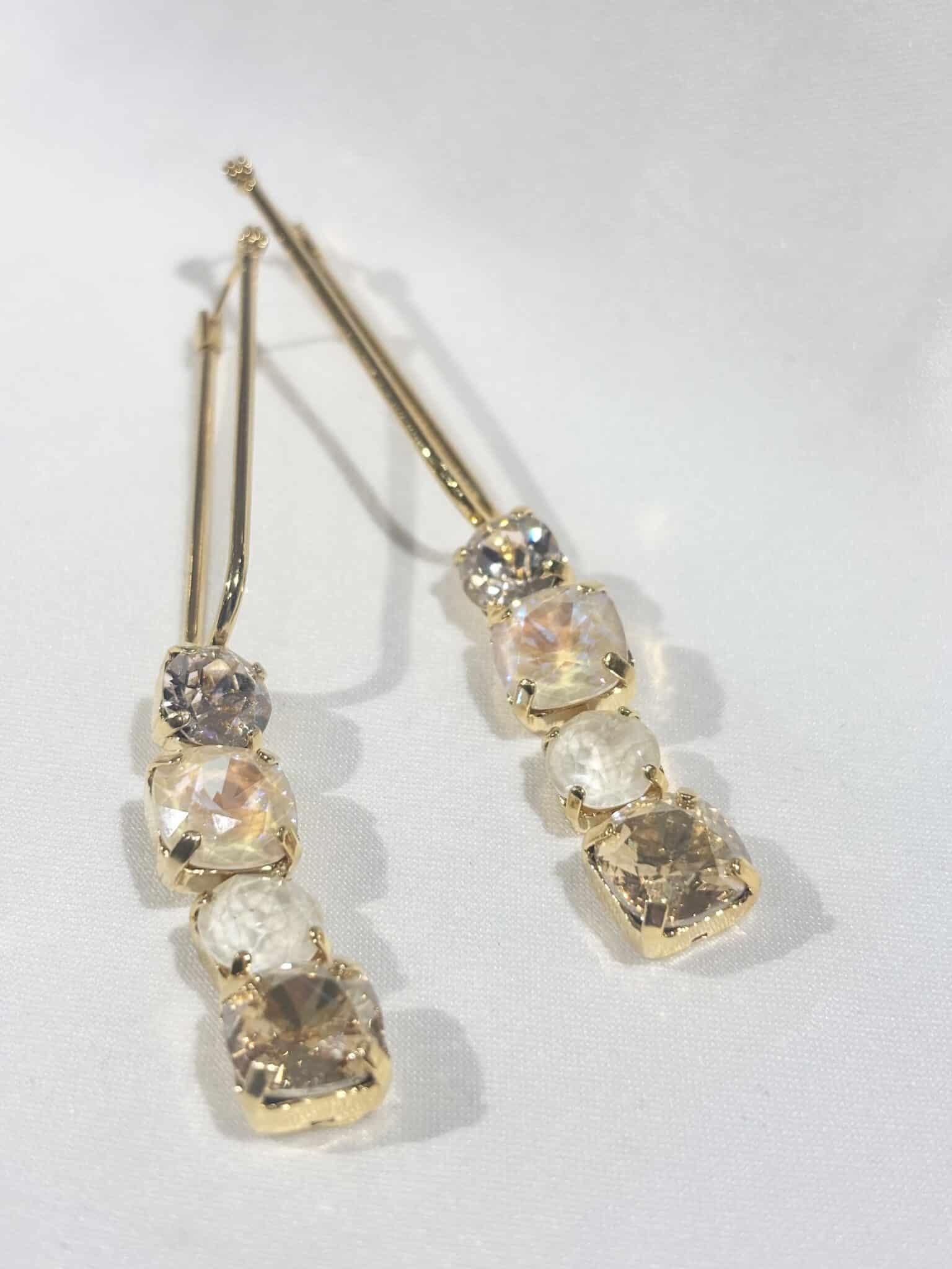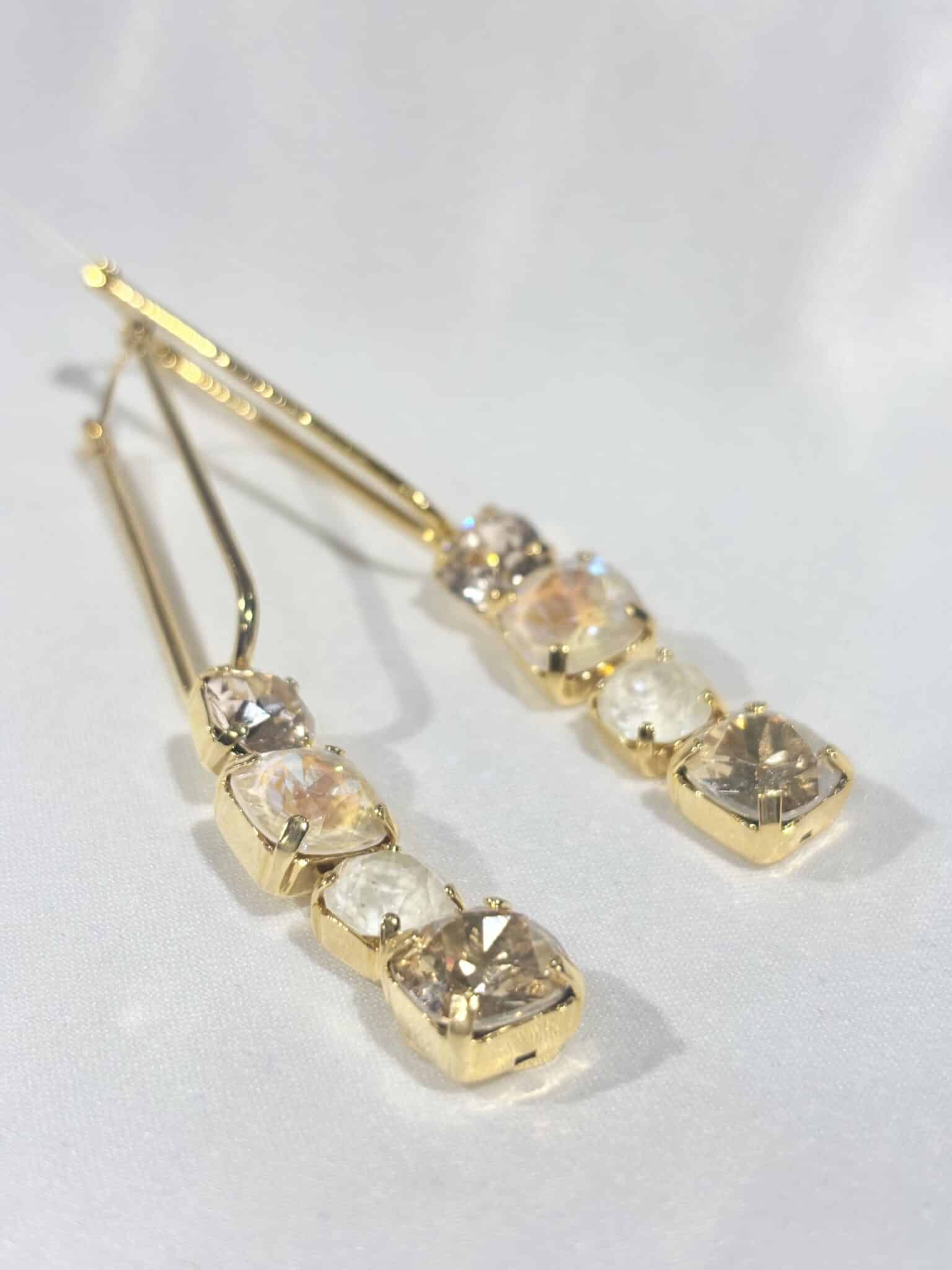 Boucles d’oreilles faites main à Paris, en laiton doré à l’or fin 24 carats ou palladium, ornées de cristaux Swarovski. ✨