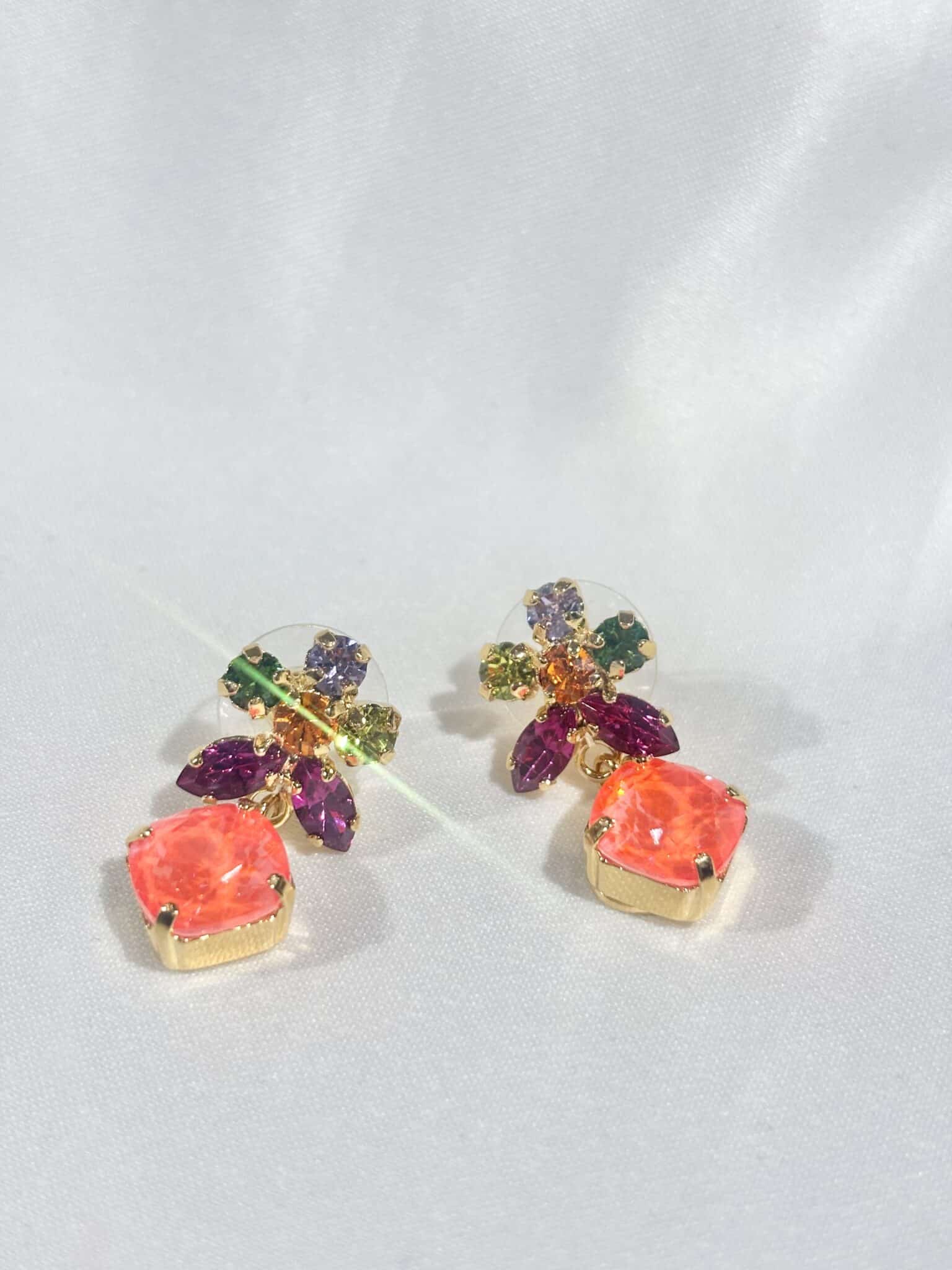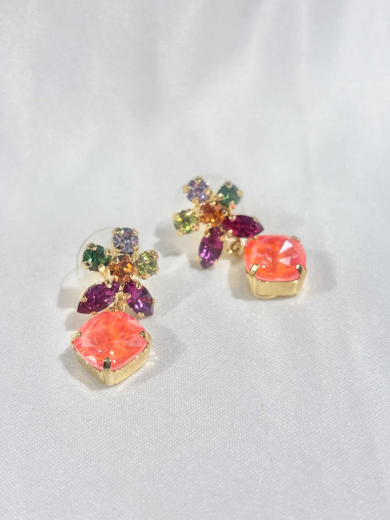 Boucles d’oreilles faites main à Paris, en laiton doré à l’or fin 24 carats ou palladium, ornées de cristaux Swarovski. ✨