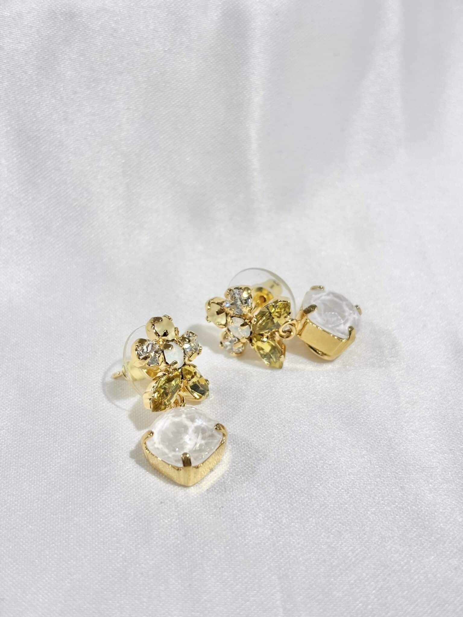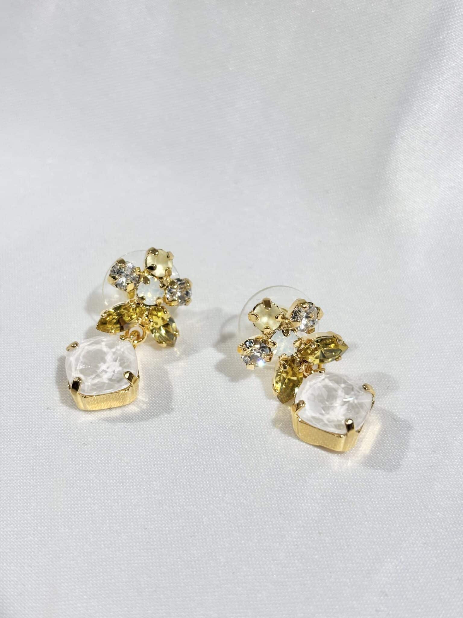 Boucles d’oreilles faites main à Paris, en laiton doré à l’or fin 24 carats ou palladium, ornées de cristaux Swarovski. ✨