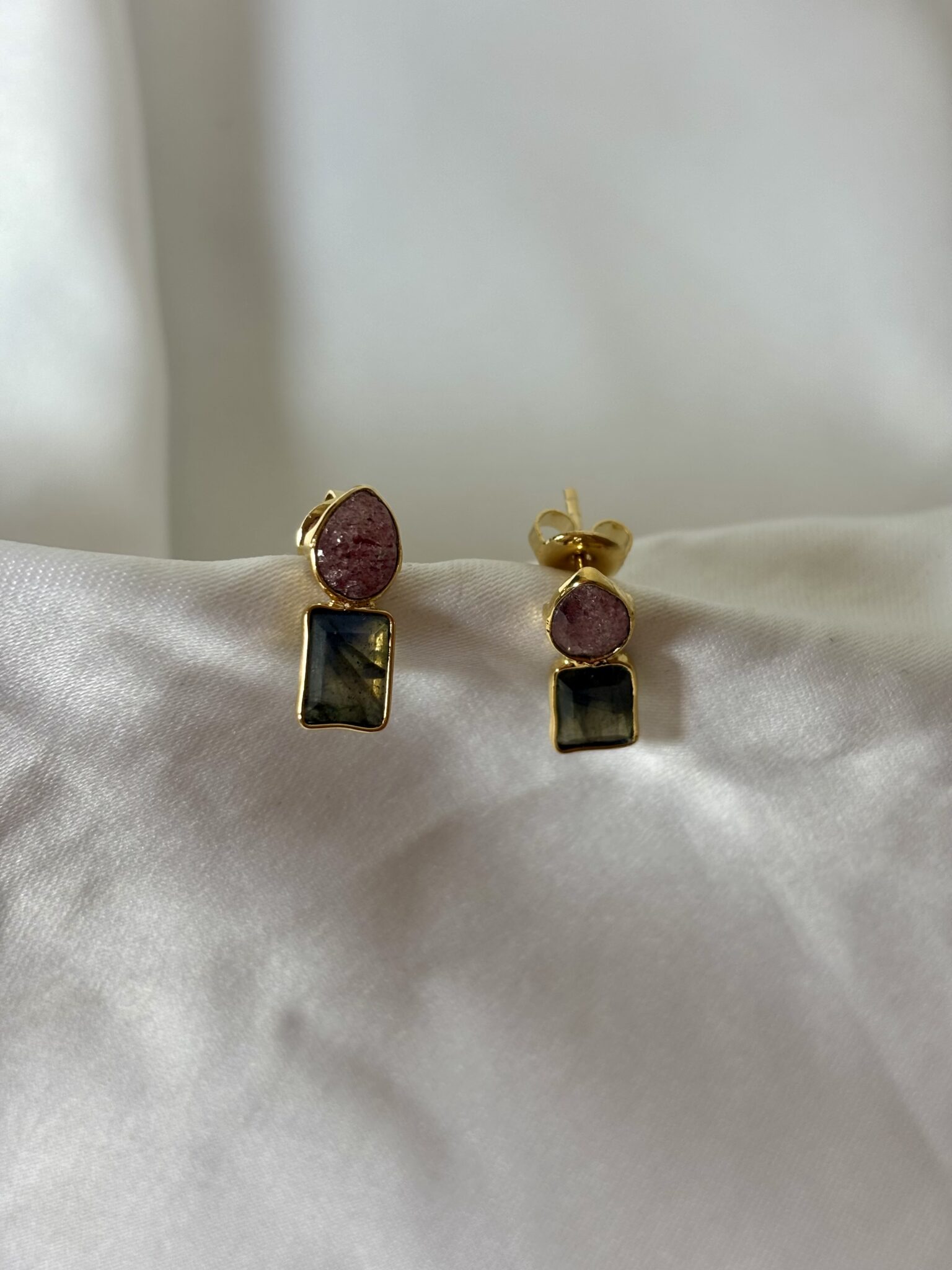 Pierres : labradorite, quartz fraise