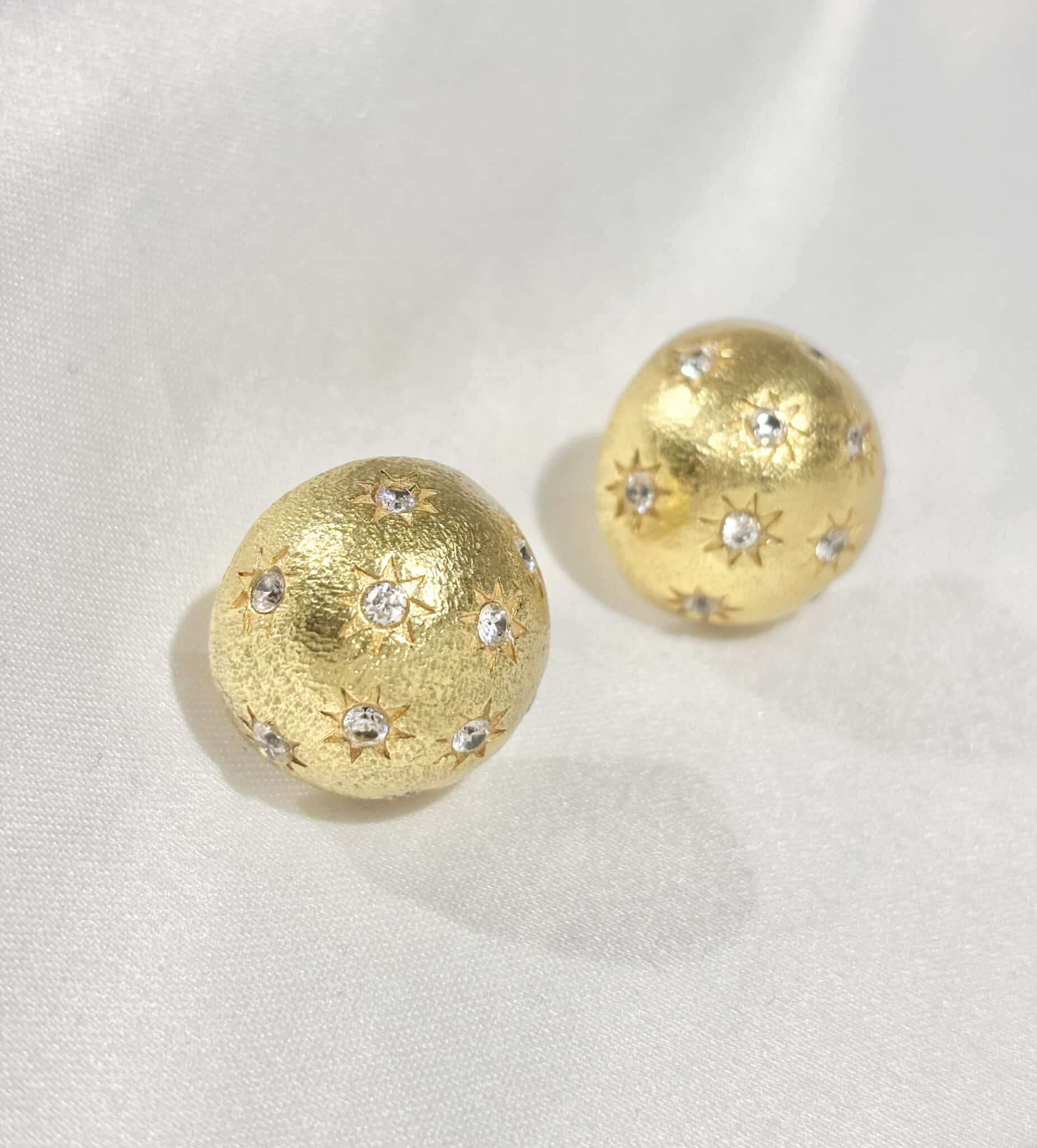 Boucles d’oreilles Niiki Paris en laiton doré à l’or fin, fermoir poussettes.