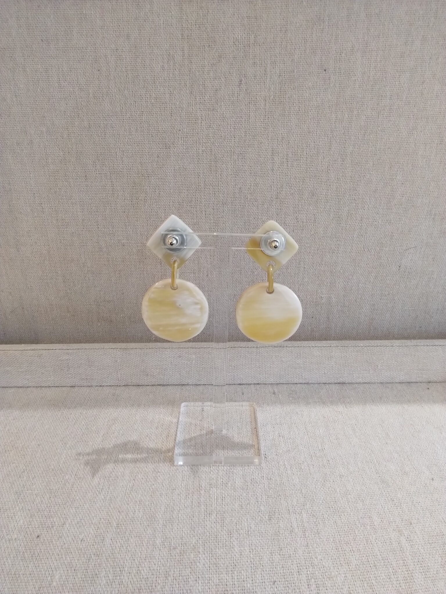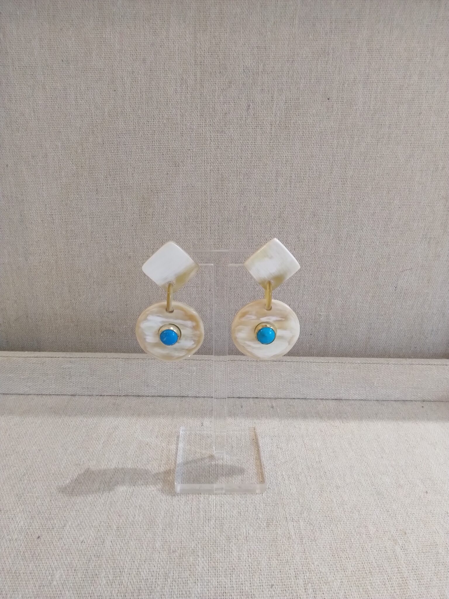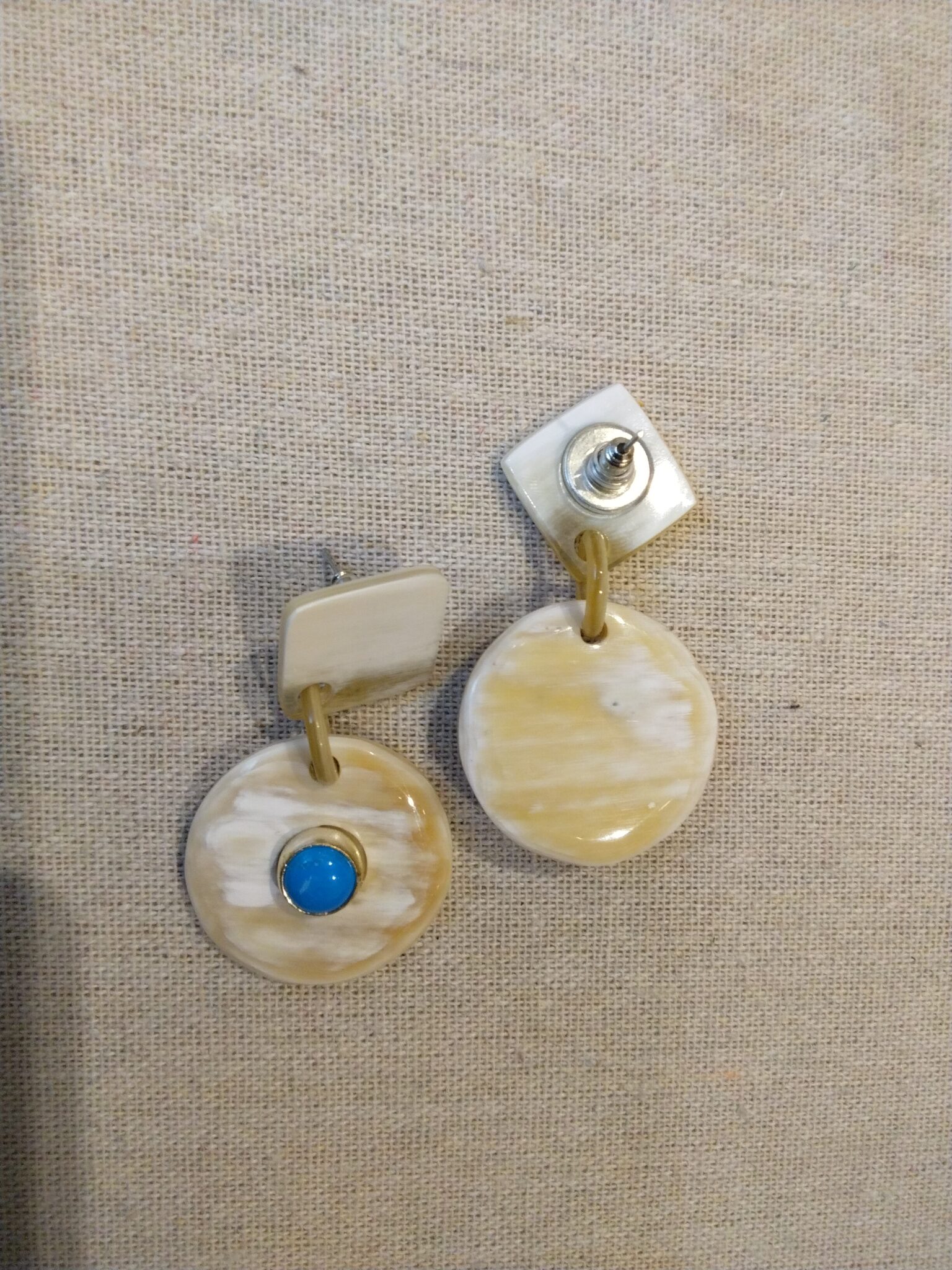 Les boucles d’oreilles de chez Soyang sont en véritable cornes de buffle et sa pierre en Apatite .