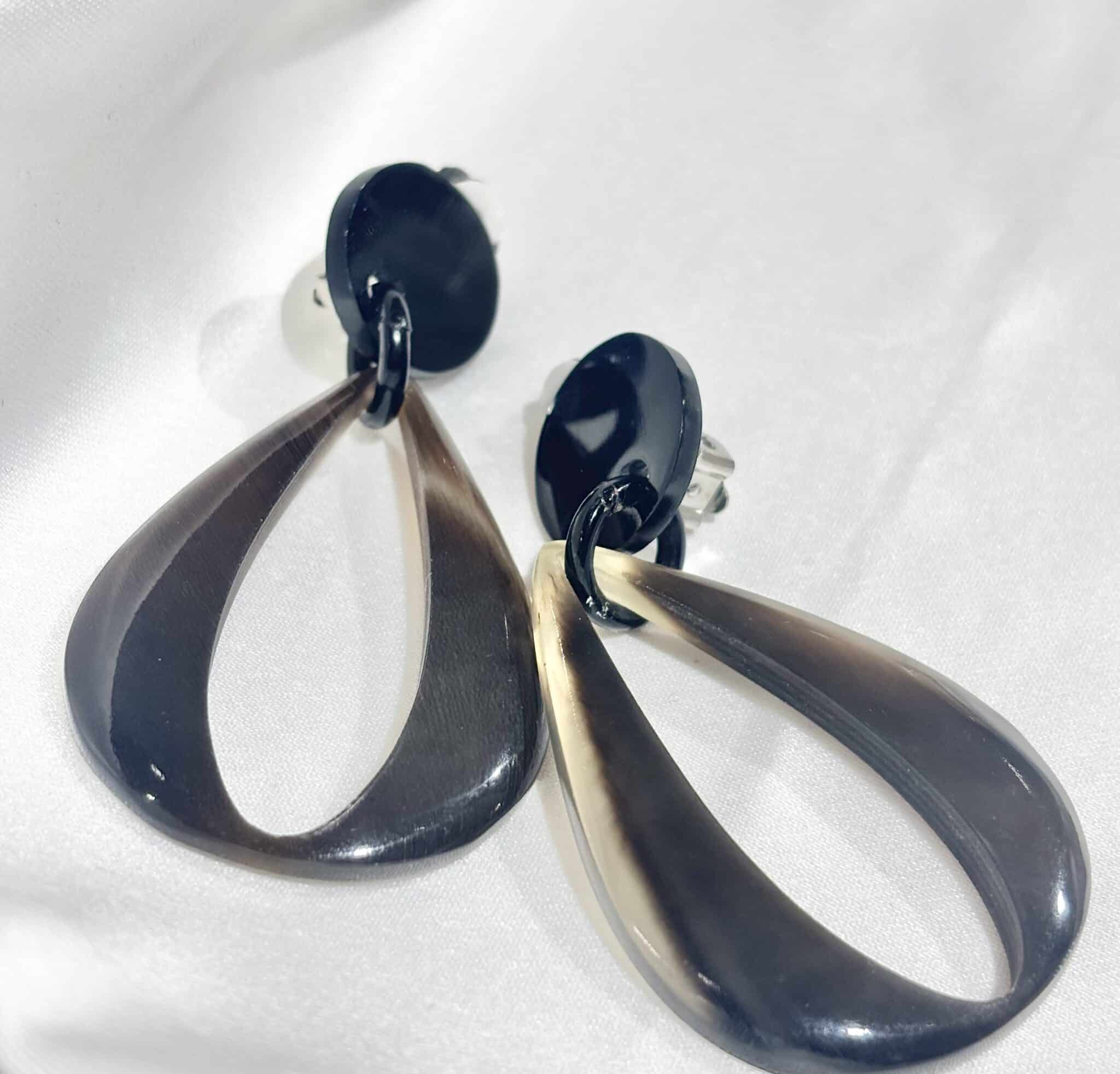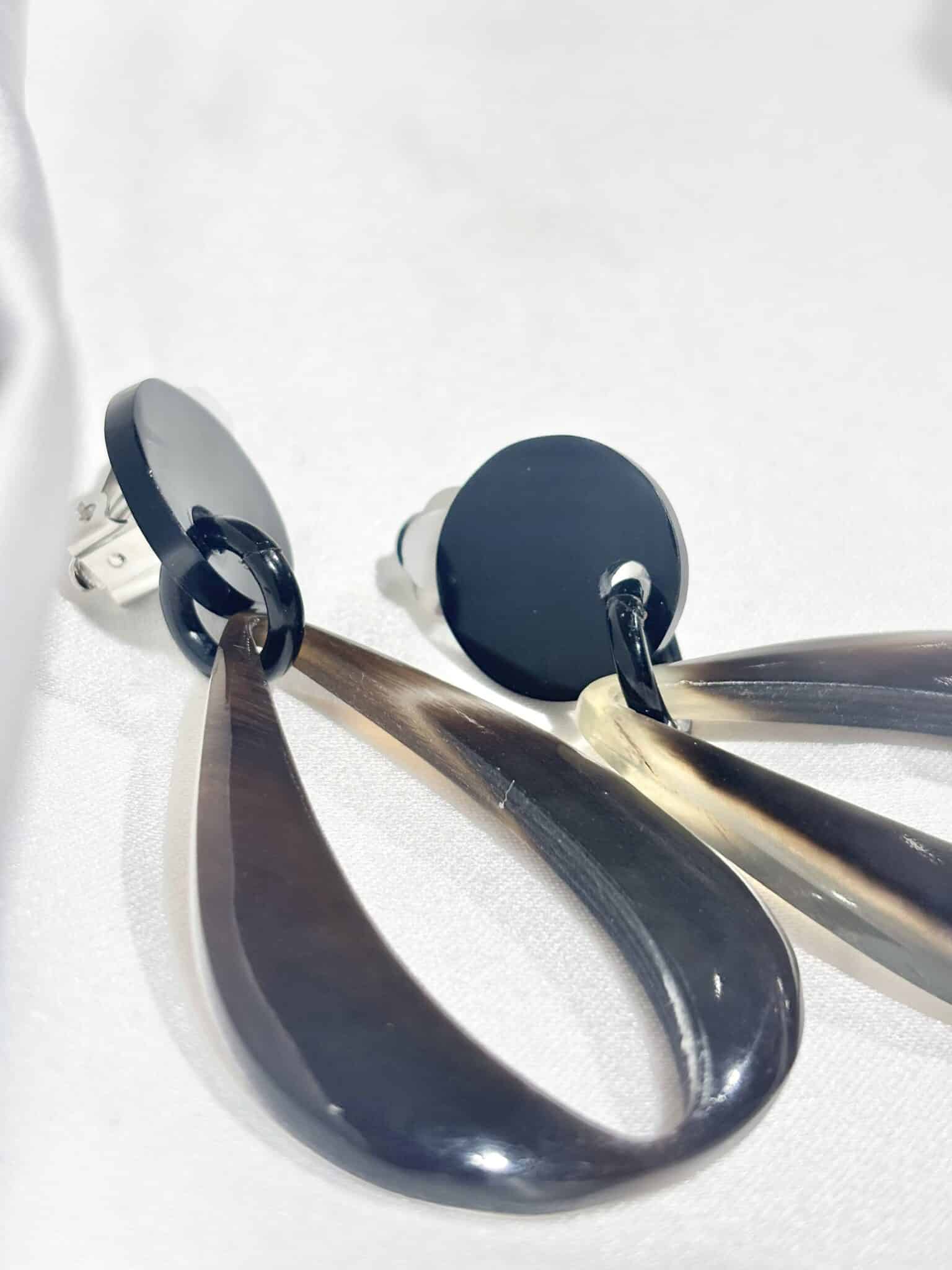 Boucles d’oreilles en corne naturelle, au design unique et élégant. Chaque paire est différente pour un bijou de caractère.