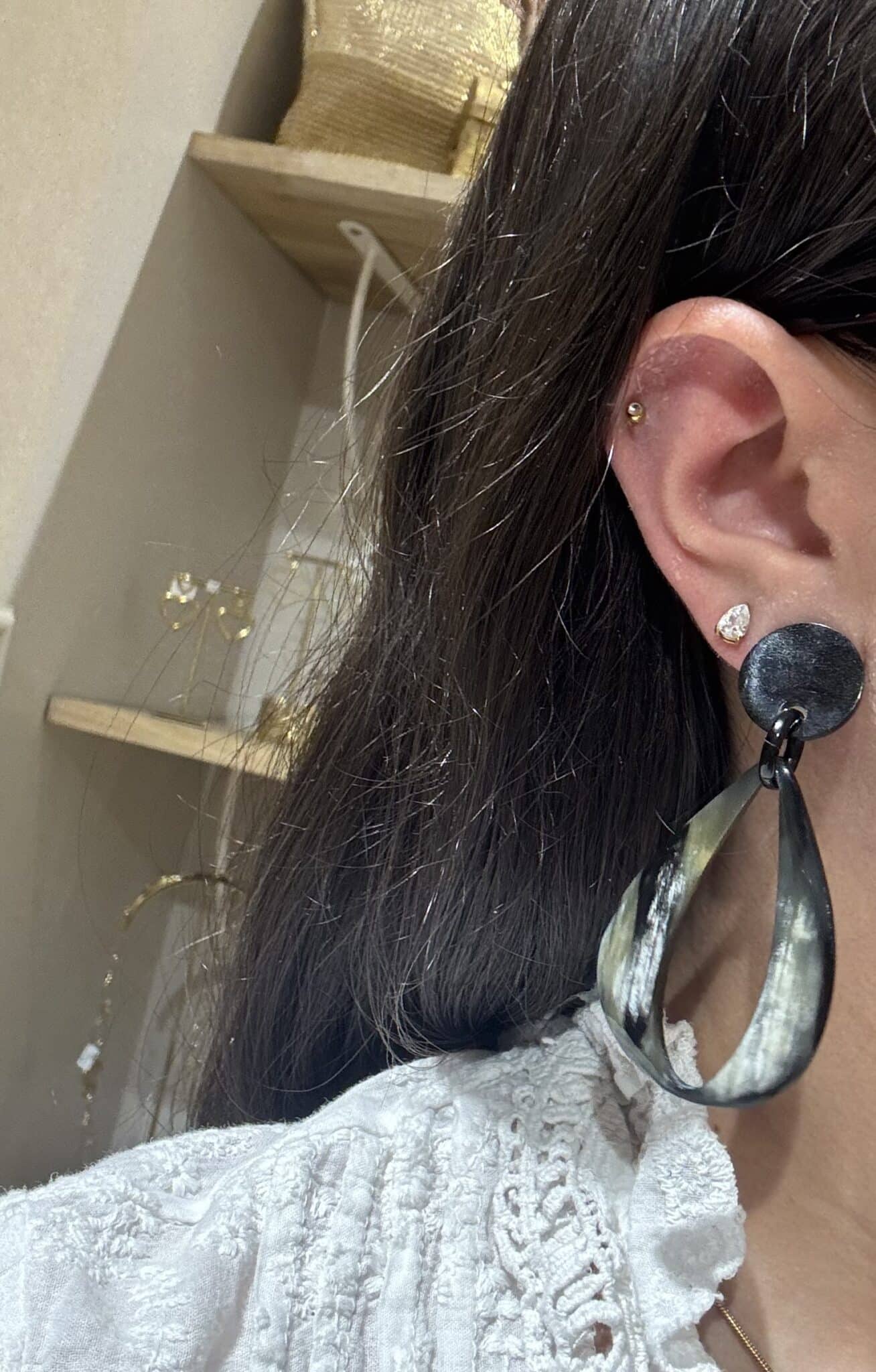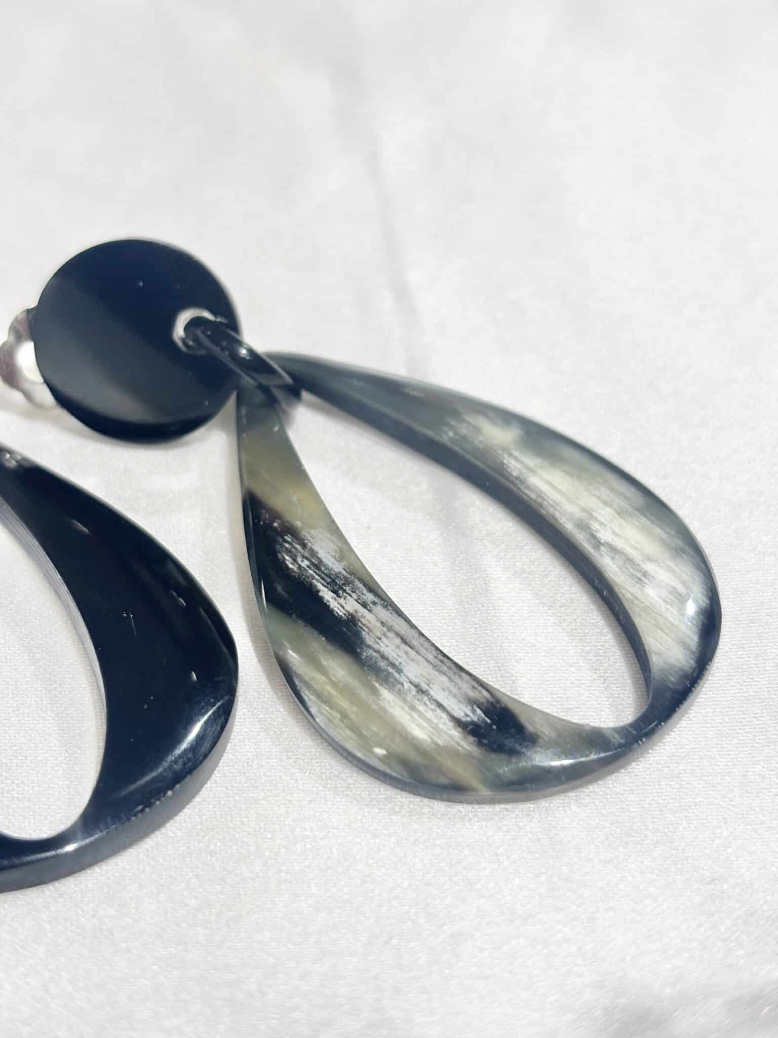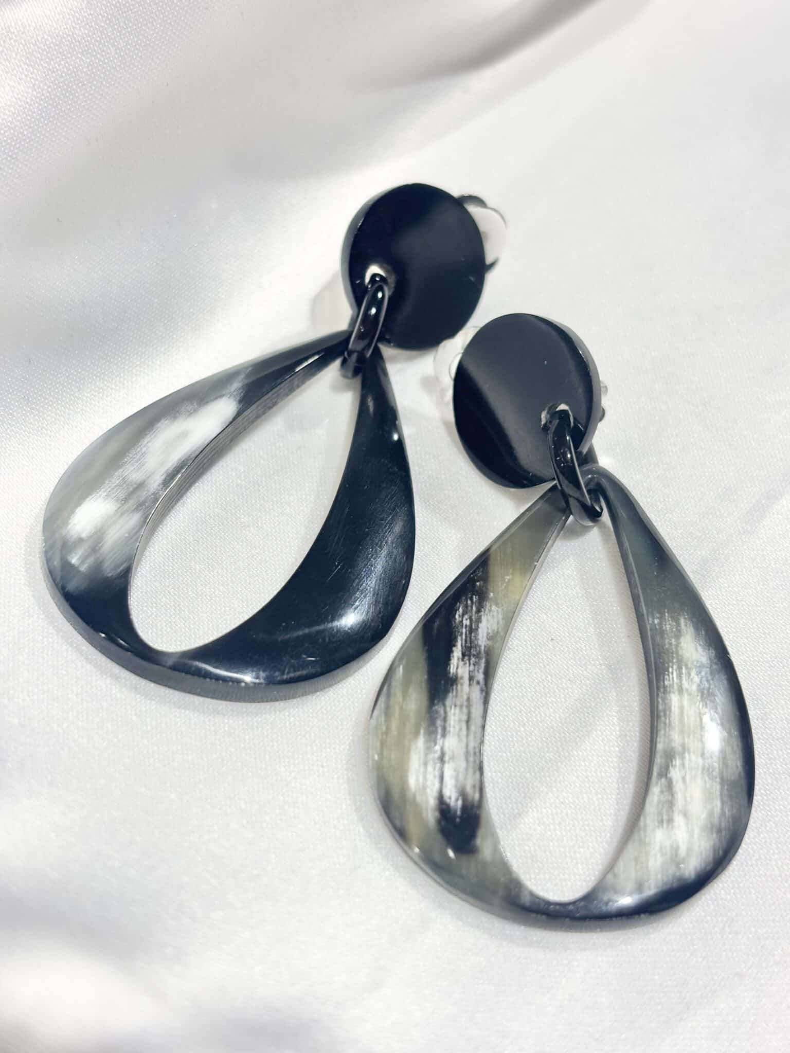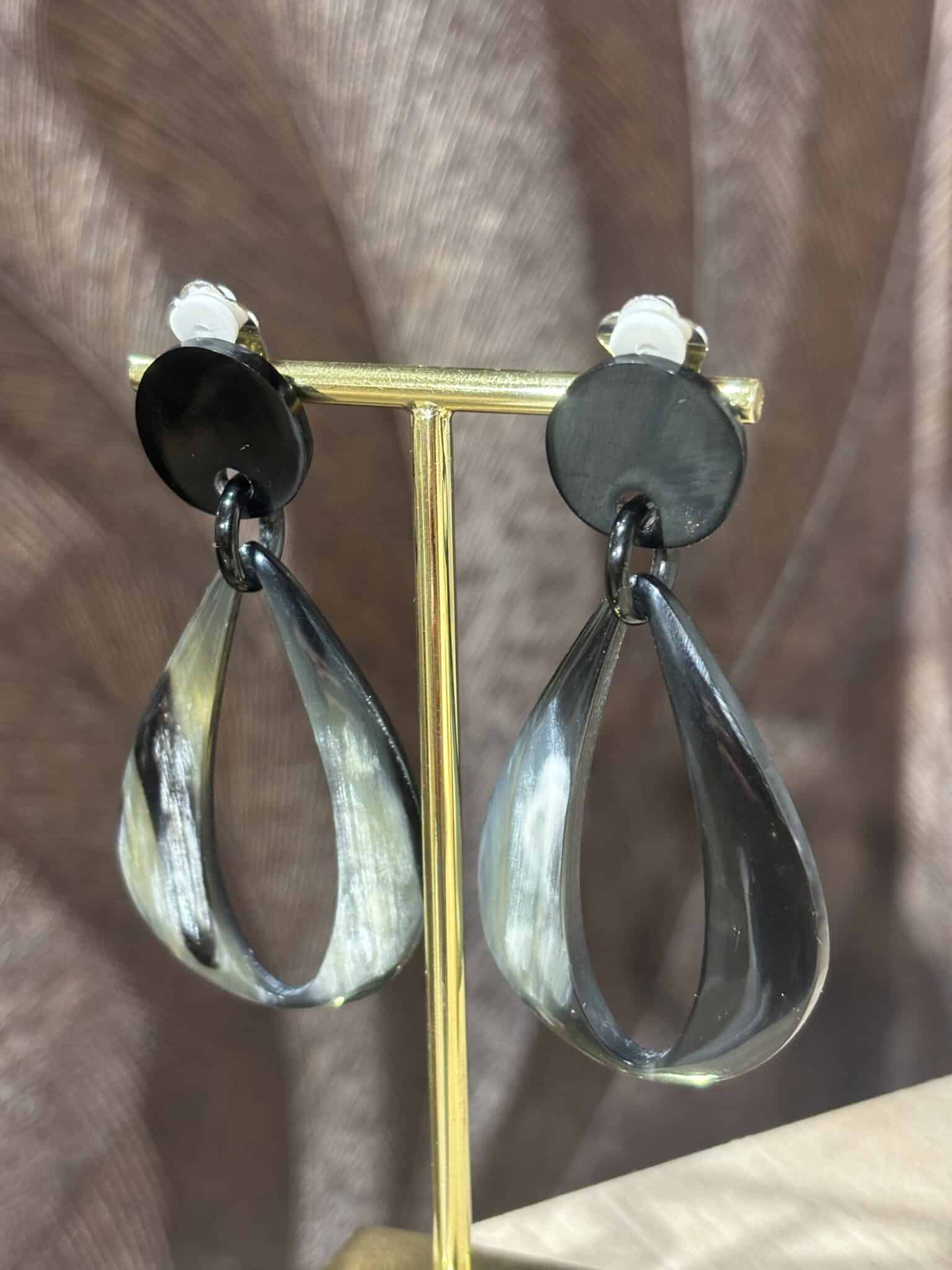 Boucles d’oreilles en corne naturelle, au design unique et élégant. Chaque paire est différente pour un bijou de caractère.