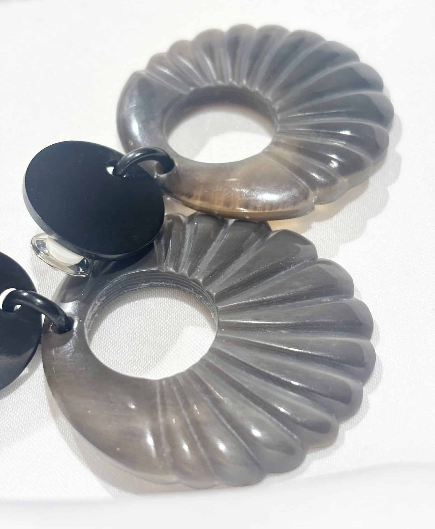 Boucles d’oreilles en corne naturelle, au design unique et élégant. Chaque paire est différente pour un bijou de caractère.