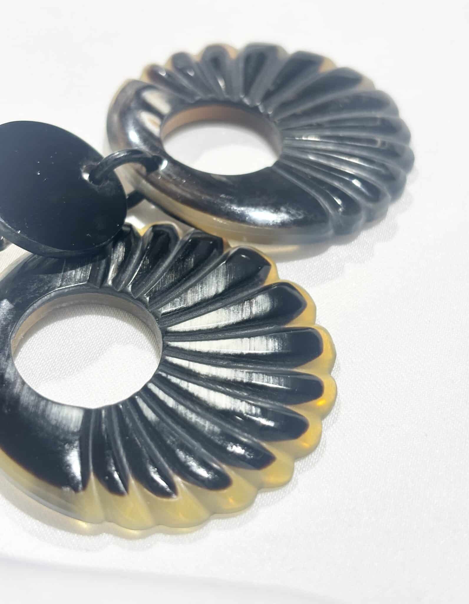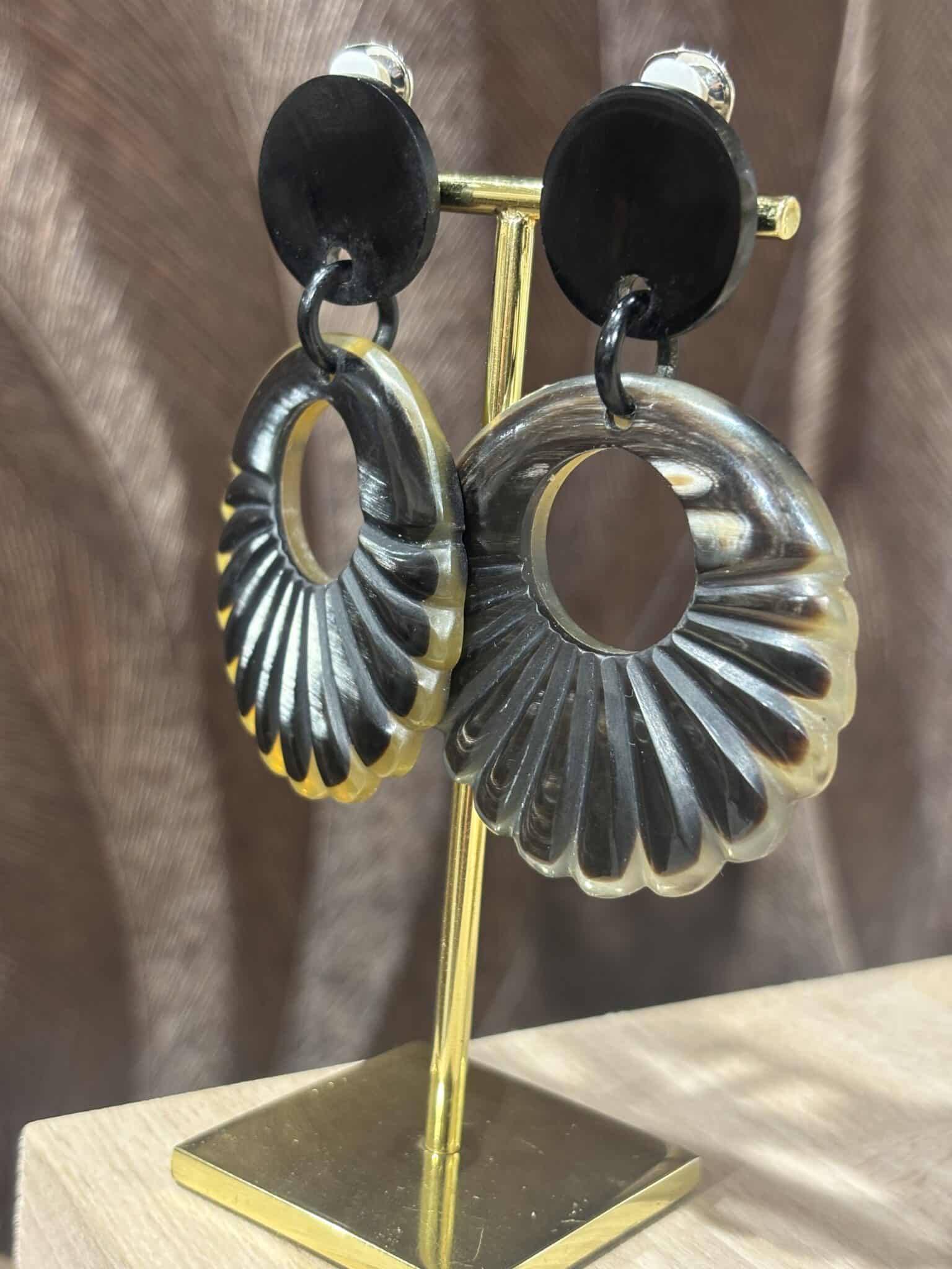 Boucles d’oreilles en corne naturelle, au design unique et élégant. Chaque paire est différente pour un bijou de caractère.
