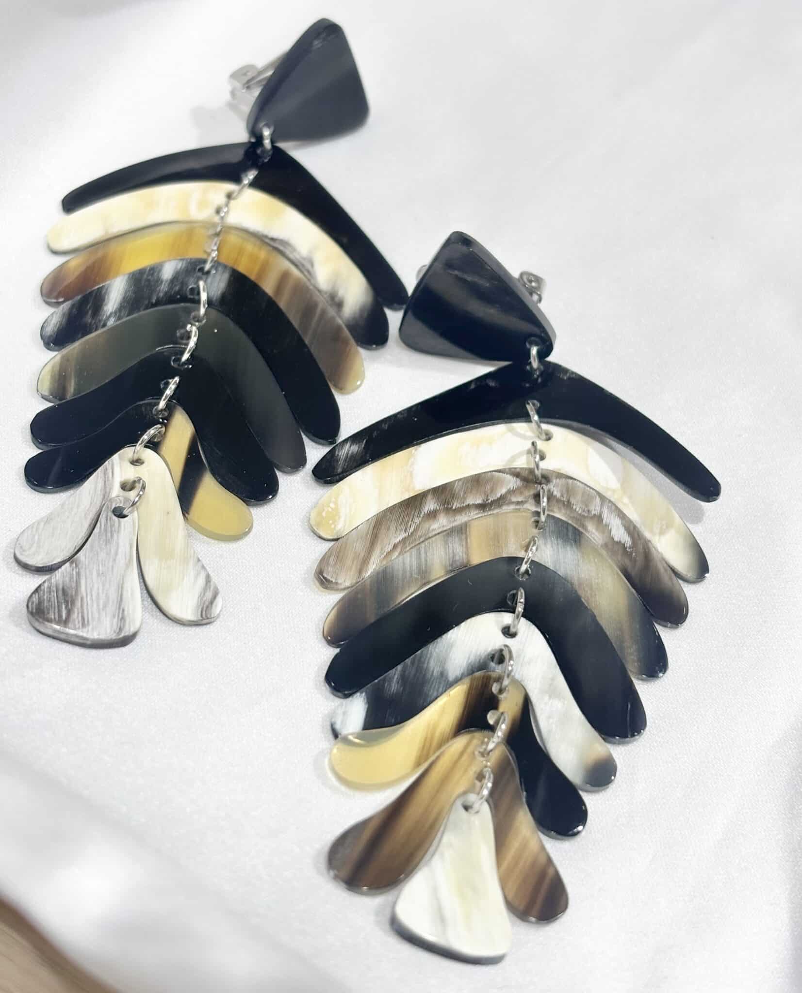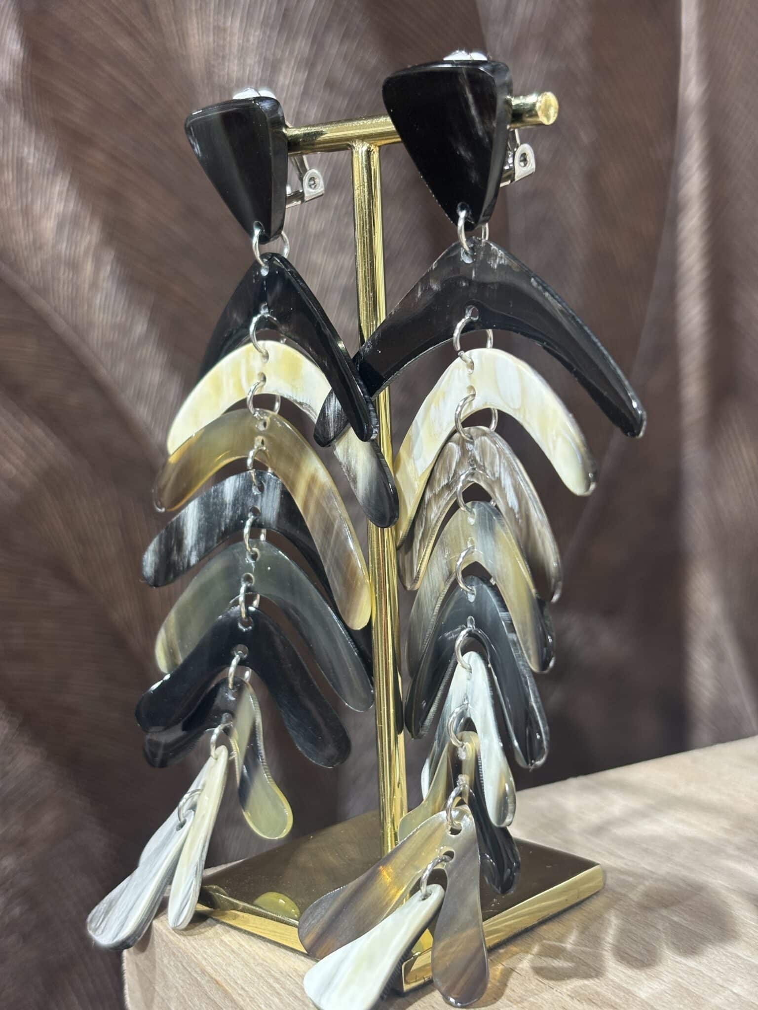 Boucles d’oreilles en corne naturelle, au design unique et élégant. Chaque paire est différente pour un bijou de caractère.