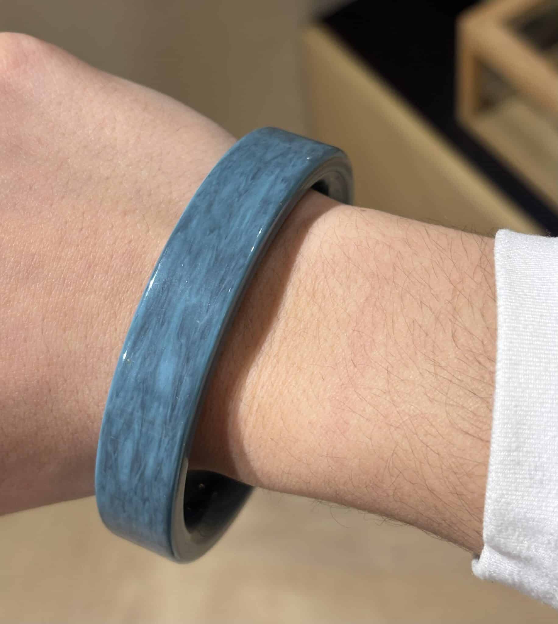 Ce modèle est réalisé en acétate de cellulose, une matière noble, légère et durable, souvent utilisée en haute bijouterie fantaisie.