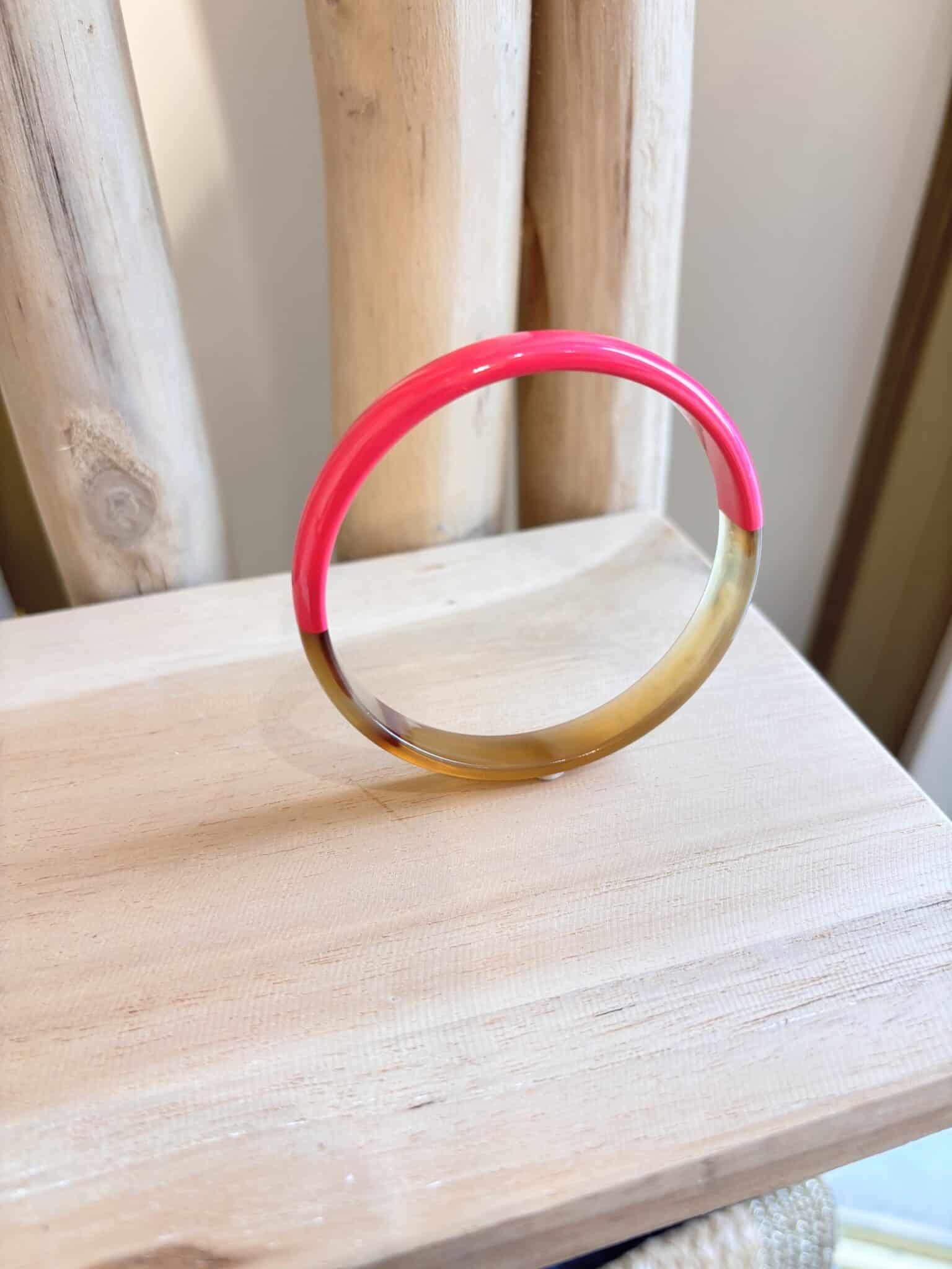 Bracelet iconique ATELIER1811, ce jonc fin en corne naturelle partiellement laquée de couleur se porte seul, en accumulation ou en mix avec d’autres bracelets colorés en corne naturelle.