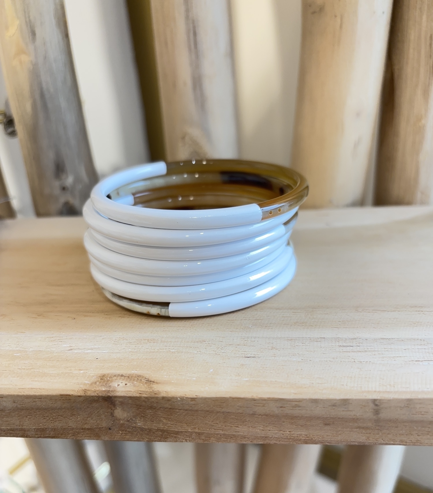 Bracelet iconique ATELIER1811, ce jonc fin en corne naturelle partiellement laquée de couleur se porte seul, en accumulation ou en mix avec d’autres bracelets colorés en corne naturelle.