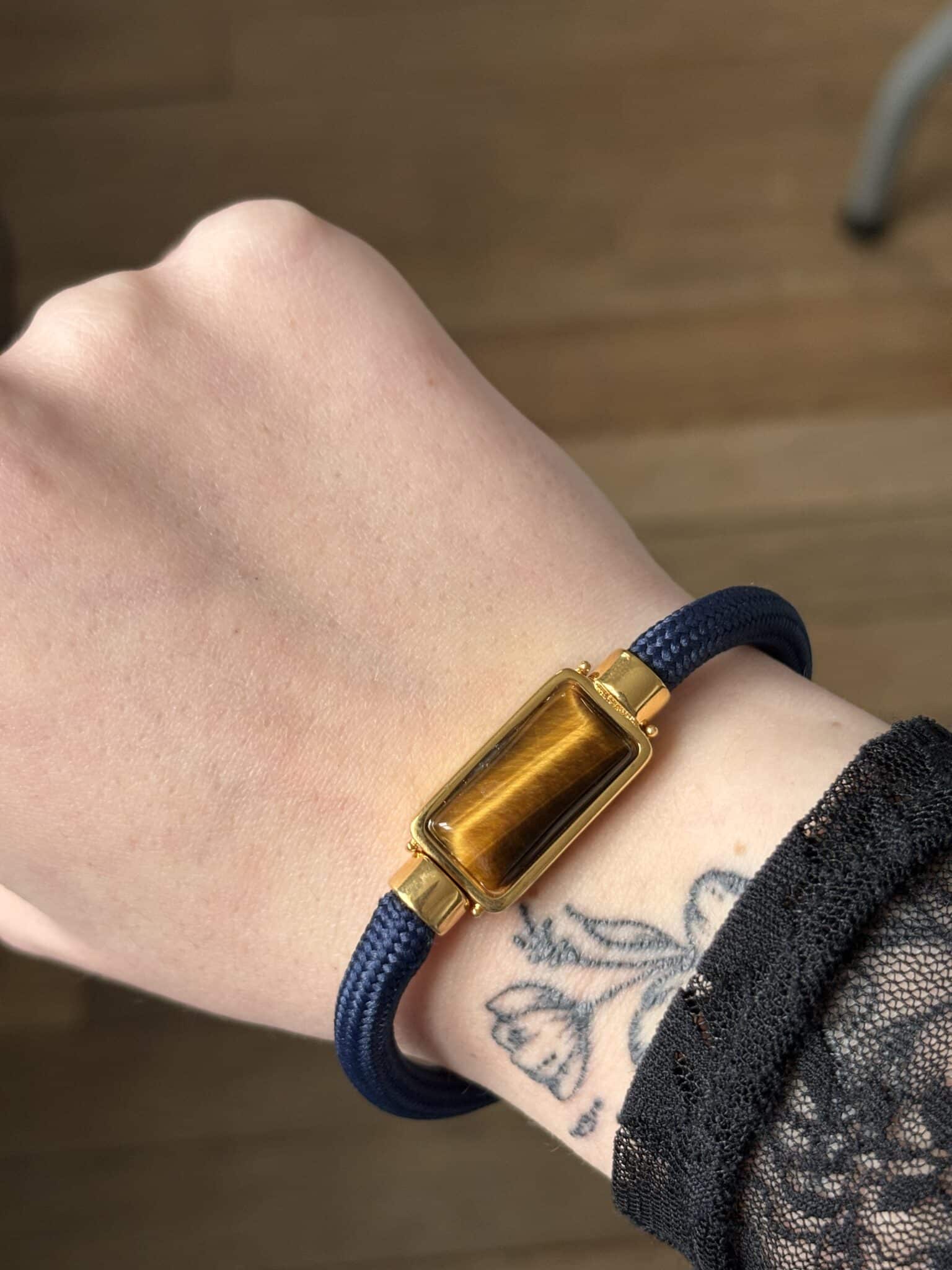 Le bracelet Lucas Jack Lizia en plaqué or 18 k recyclé et une magnifique résine très délicate. Elle est très agréable à porter