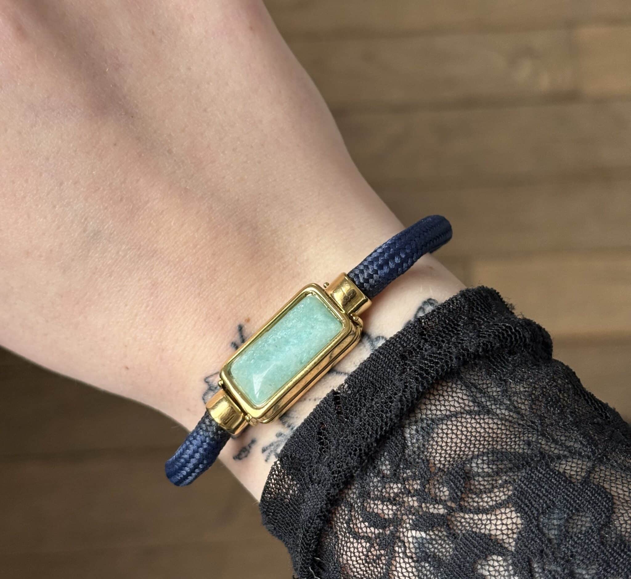 Le bracelet Lucas Jack Lizia en plaqué or 18 k recyclé et une magnifique résine très délicate. Elle est très agréable à porter