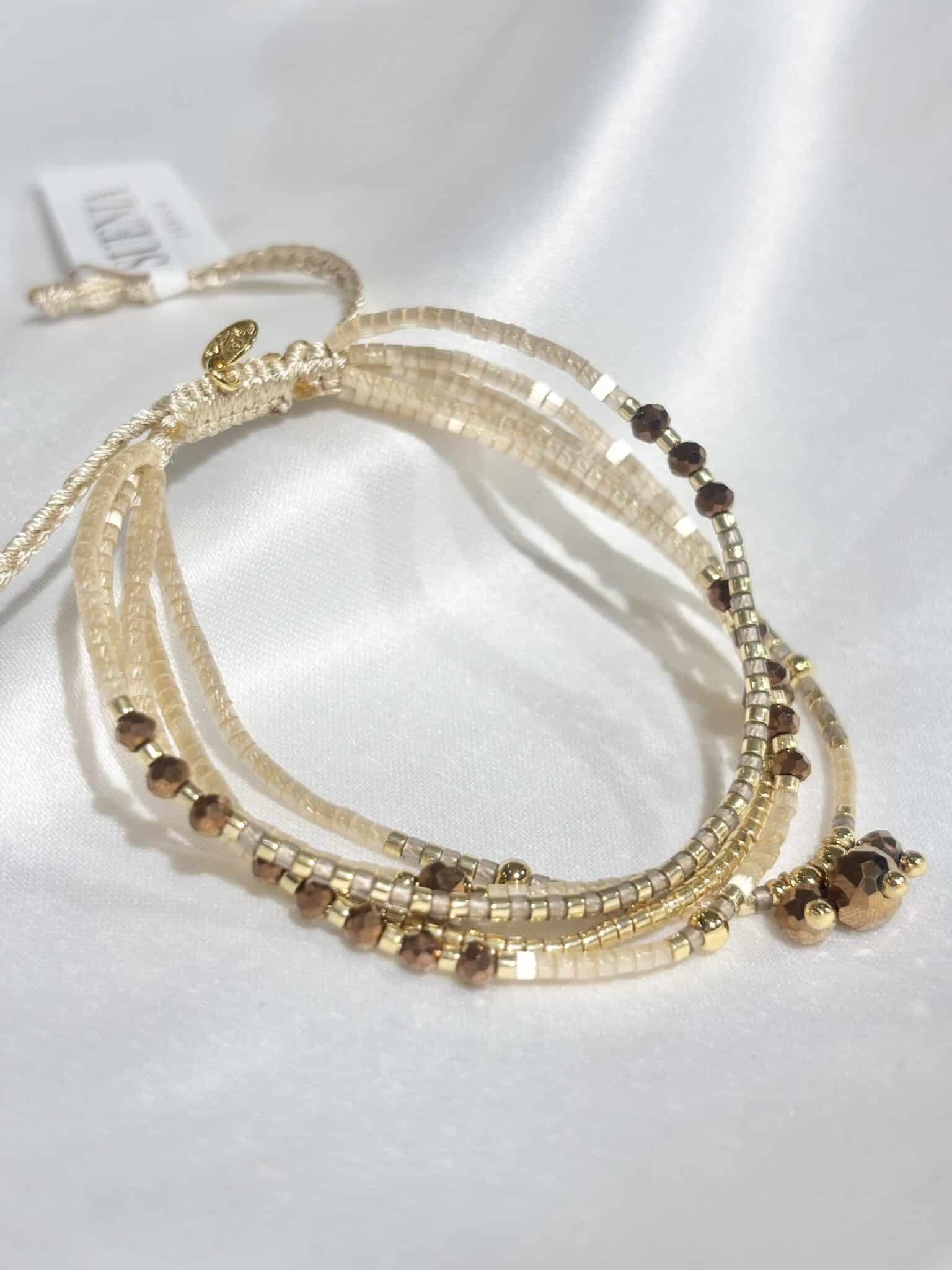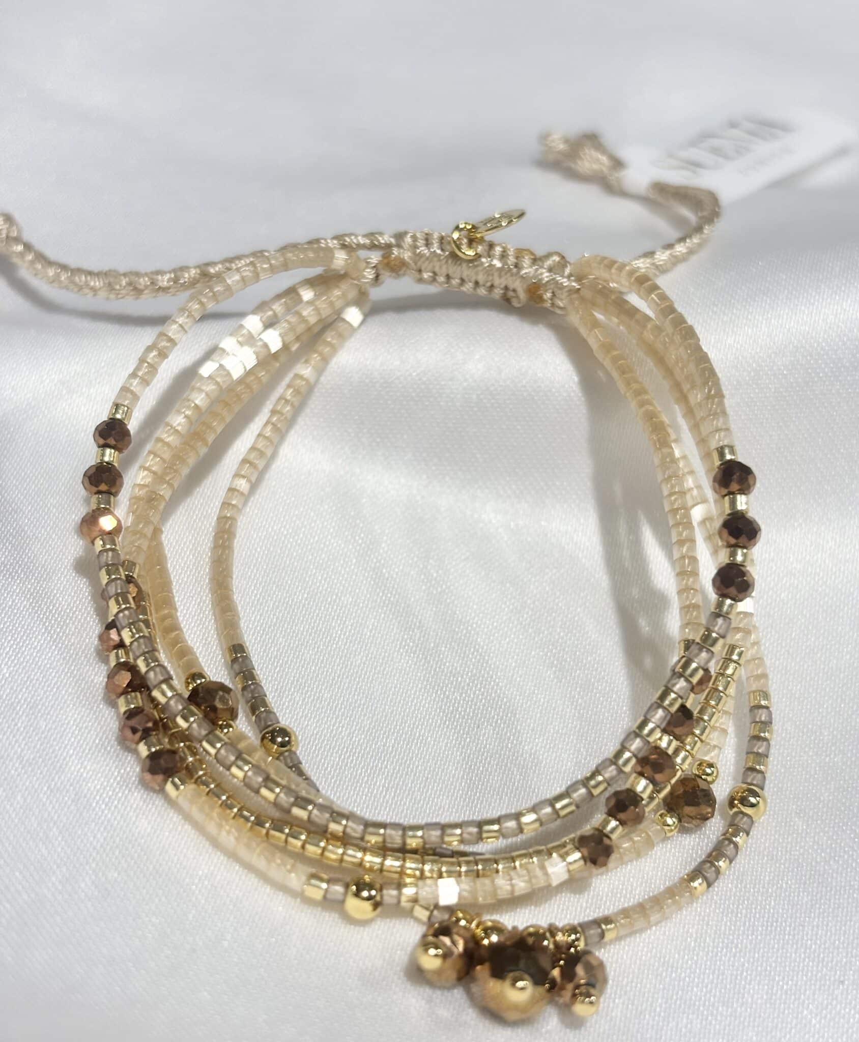 Les bracelets Suenia allient savoir-faire artisanal et élégance intemporelle. Tissés à la main avec soin sur un fil de coton et ornés de perles de verre, ils se déclinent en plusieurs coloris pour s’harmoniser avec votre style et vos envies. Leur design délicat permet de les porter seuls pour une touche subtile ou de les accumuler avec d’autres bijoux, y compris les modèles de la gamme Suenia, pour un effet plus personnalisé et tendance.