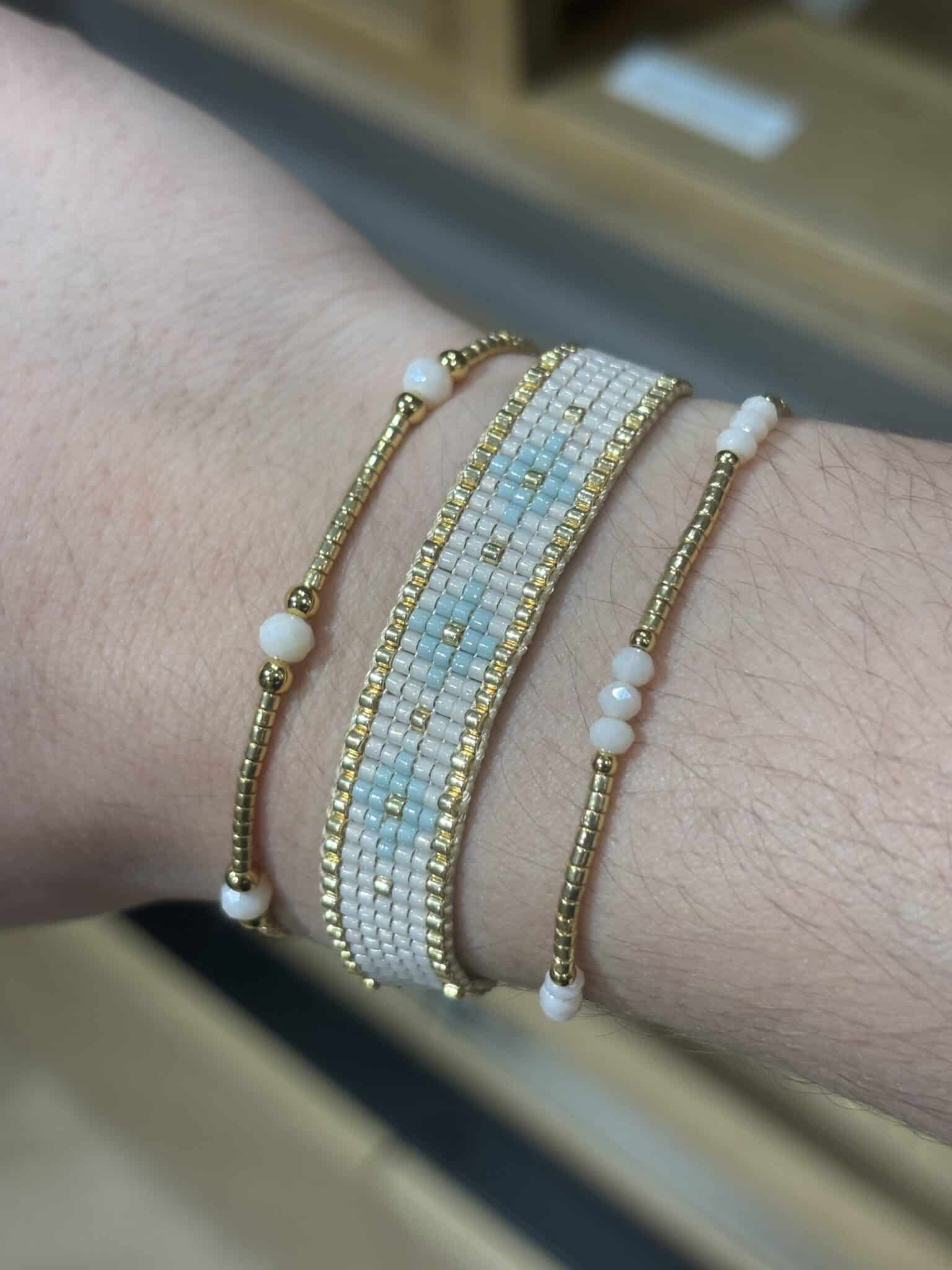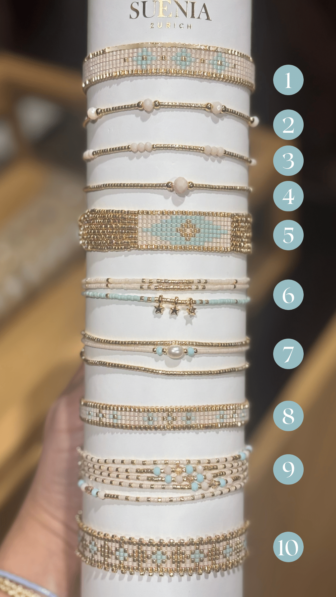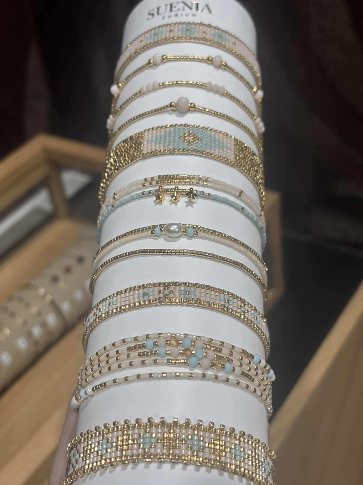 Les bracelets Suenia allient savoir-faire artisanal et élégance intemporelle. Tissés à la main avec soin sur un fil de coton et ornés de perles de verre, ils se déclinent en plusieurs coloris pour s’harmoniser avec votre style et vos envies. Leur design délicat permet de les porter seuls pour une touche subtile ou de les accumuler avec d’autres bijoux, y compris les modèles de la gamme Suenia, pour un effet plus personnalisé et tendance.