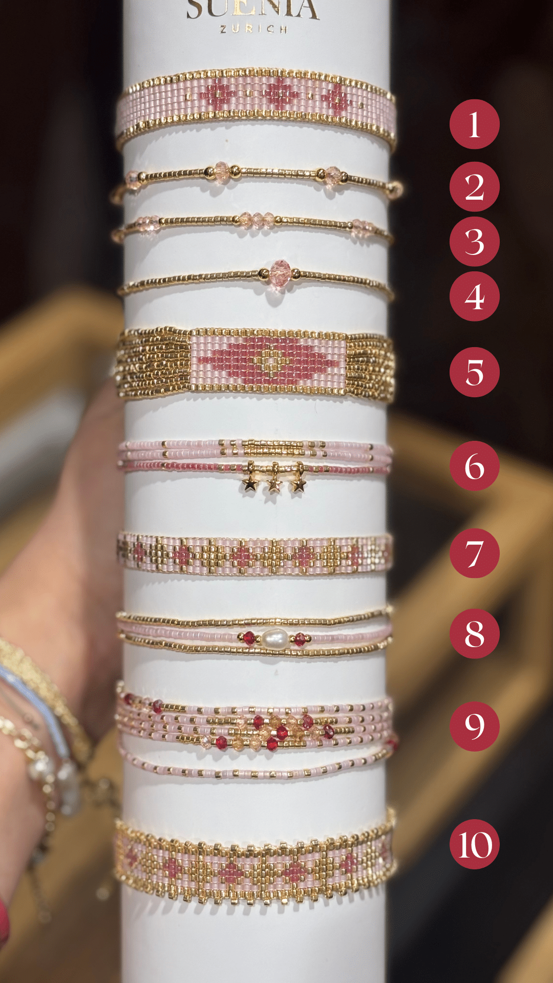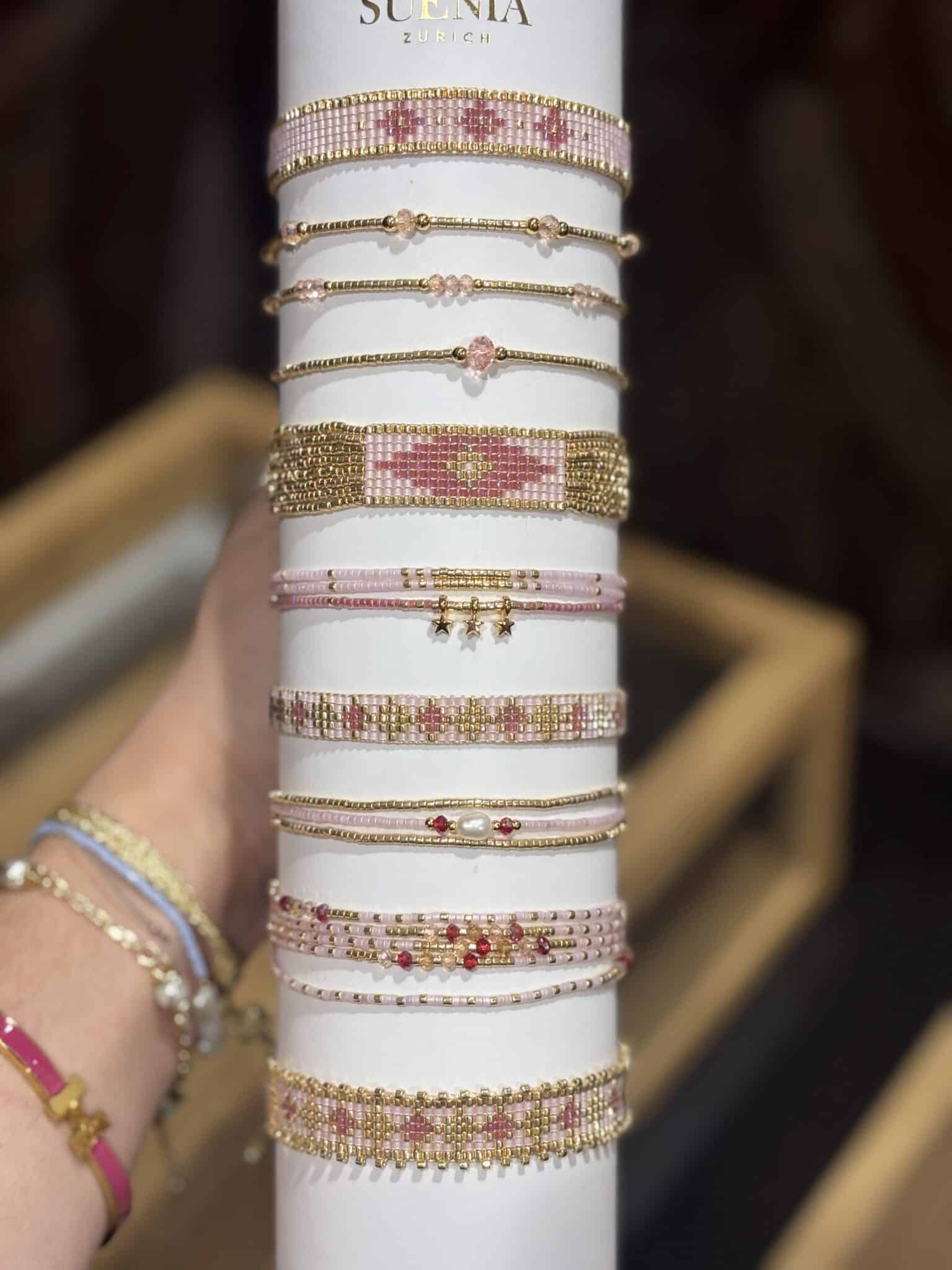 Les bracelets Suenia allient savoir-faire artisanal et élégance intemporelle. Tissés à la main avec soin sur un fil de coton et ornés de perles de verre, ils se déclinent en plusieurs coloris pour s’harmoniser avec votre style et vos envies. Leur design délicat permet de les porter seuls pour une touche subtile ou de les accumuler avec d’autres bijoux, y compris les modèles de la gamme Suenia, pour un effet plus personnalisé et tendance.