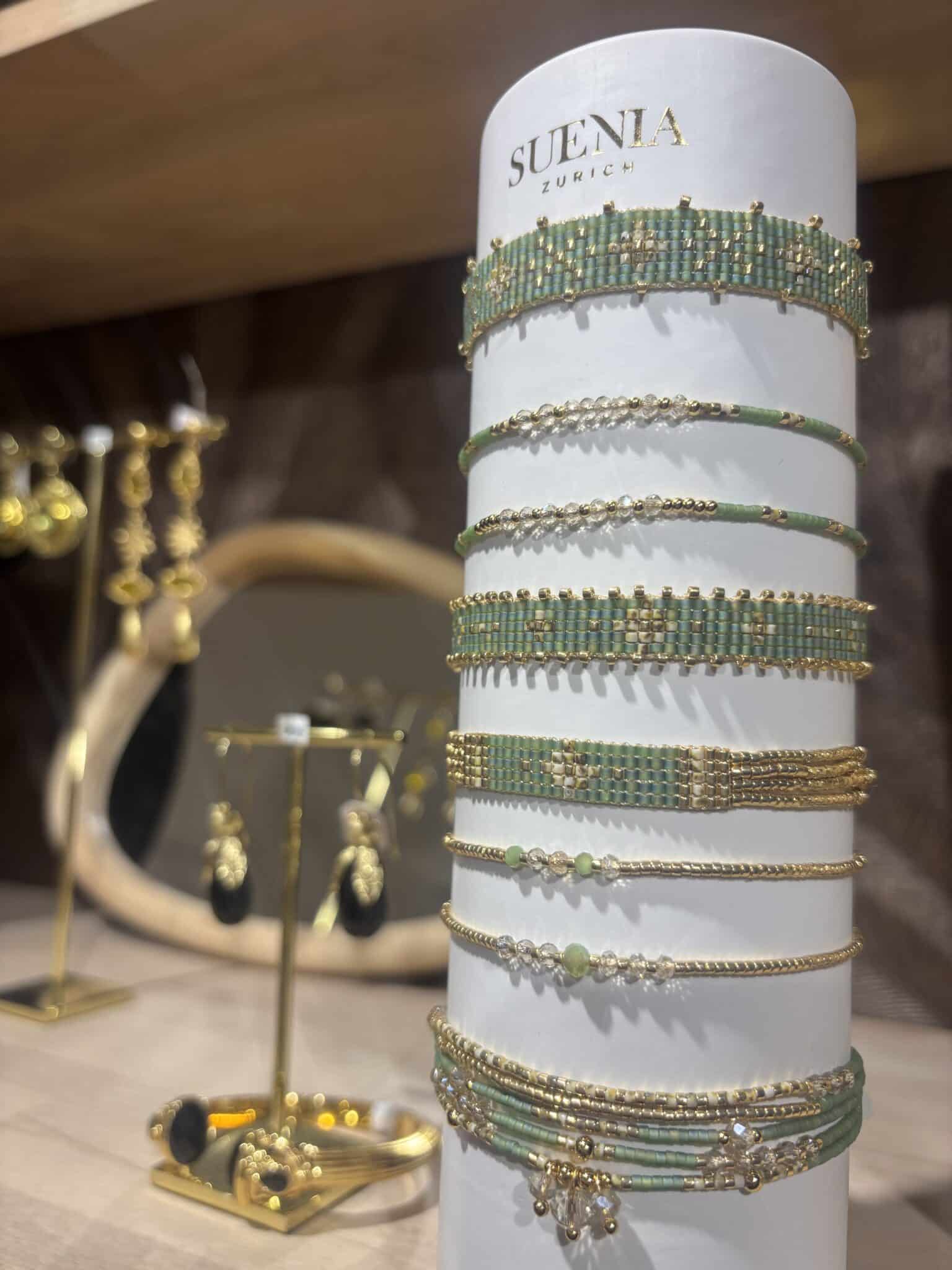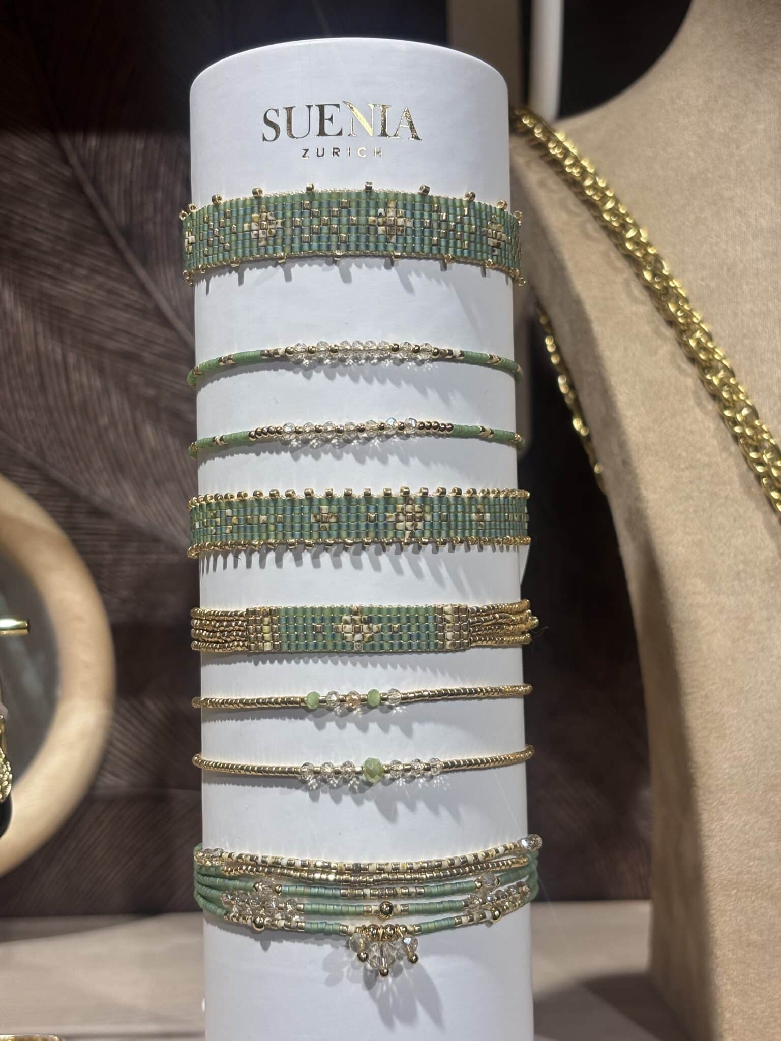 Les bracelets Suenia allient savoir-faire artisanal et élégance intemporelle. Tissés à la main avec soin sur un fil de coton et ornés de perles de verre, ils se déclinent en plusieurs coloris pour s’harmoniser avec votre style et vos envies. Leur design délicat permet de les porter seuls pour une touche subtile ou de les accumuler avec d’autres bijoux, y compris les modèles de la gamme Suenia, pour un effet plus personnalisé et tendance.
