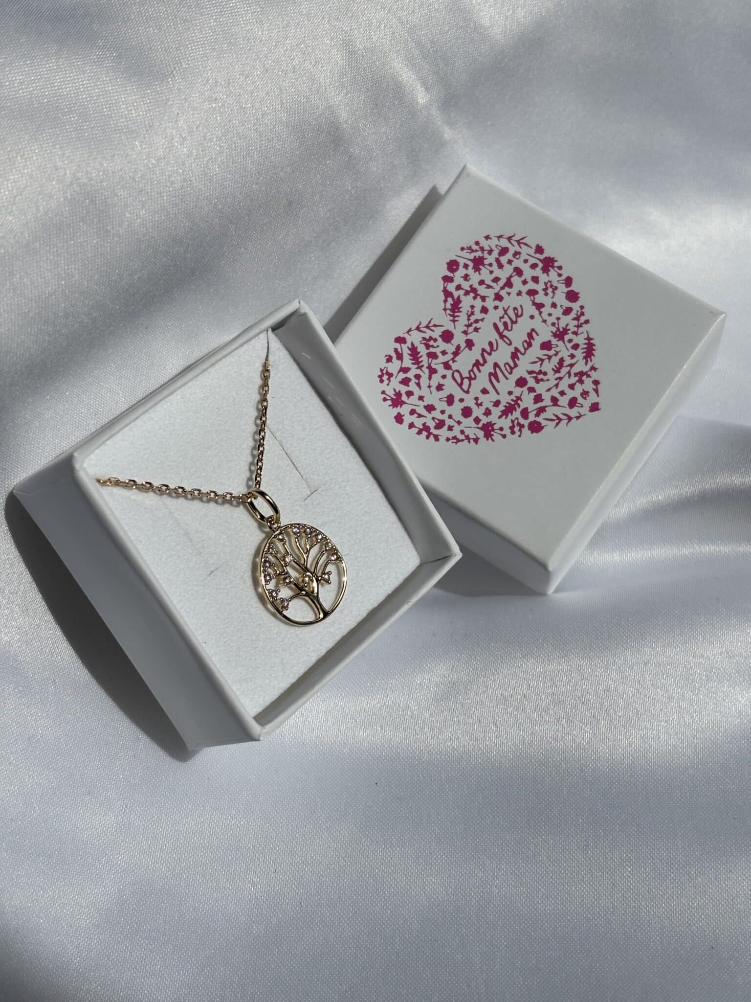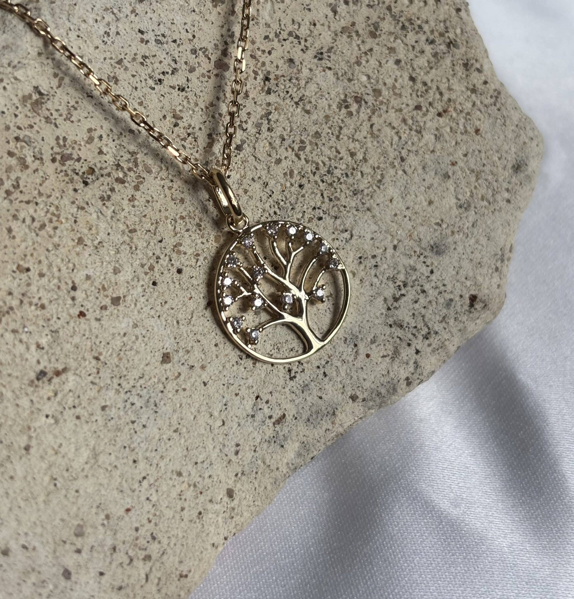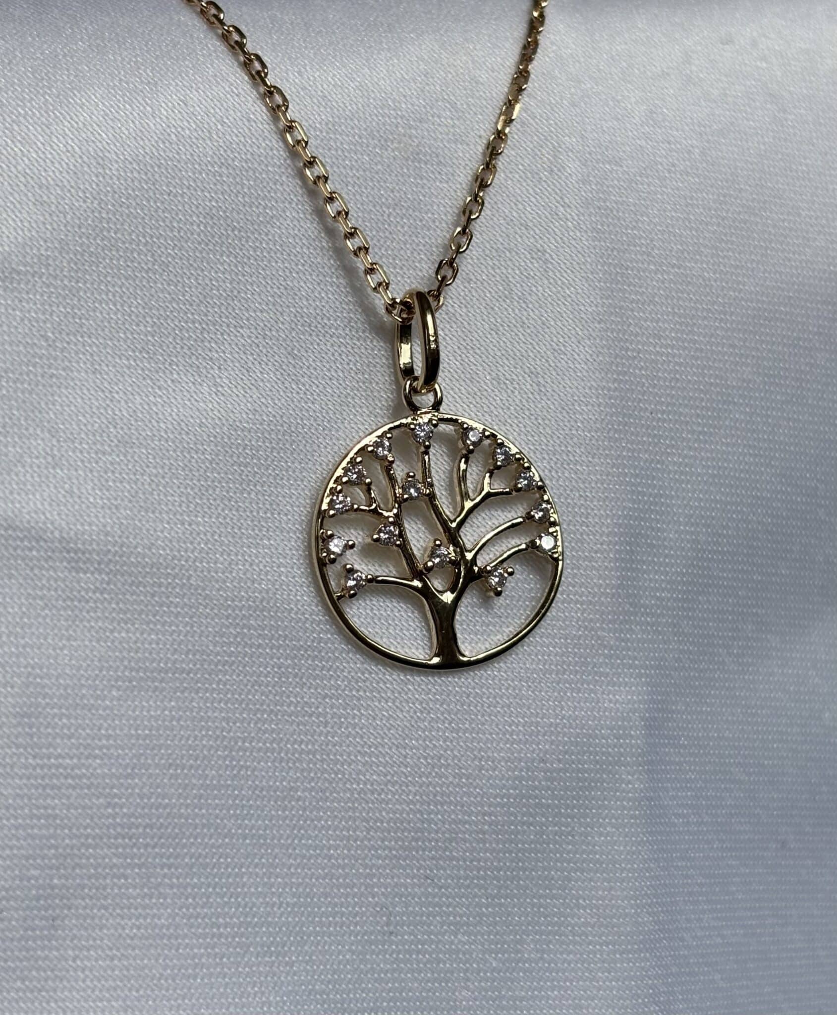 Le collier Avre en plaqué or 18K, avec un arbre de vie et des oxydes blancs, ajoute sophistication et délicatesse à vos tenues. Il est également disponible en argent.
