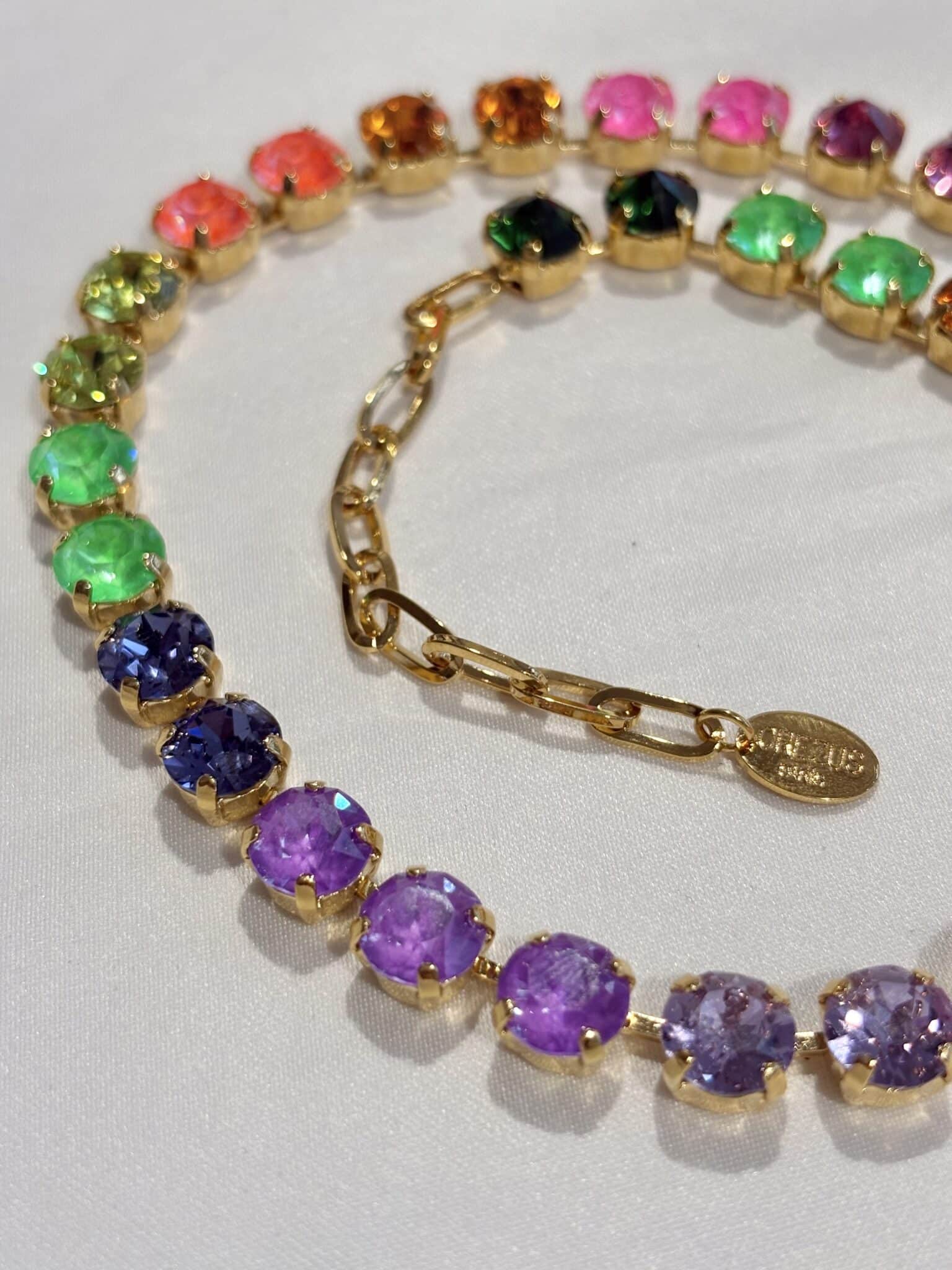 Élégant et lumineux, le collier Crezus Paris est orné de cristaux Swarovski qui captent délicatement la lumière. Entièrement réalisé à la main dans un atelier parisien, il reflète un savoir-faire artisanal et un style raffiné.