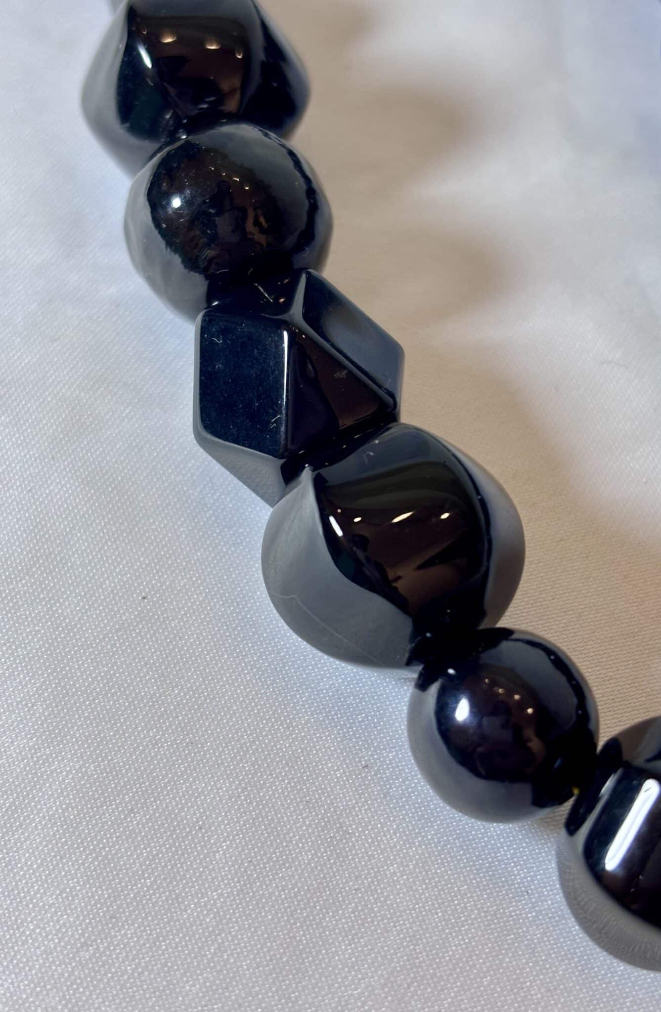 Confectionné en acétate de cellulose, une matière écoresponsable et légère souvent utilisée en bijouterie de qualité, ce collier habille le cou avec finesse et originalité.