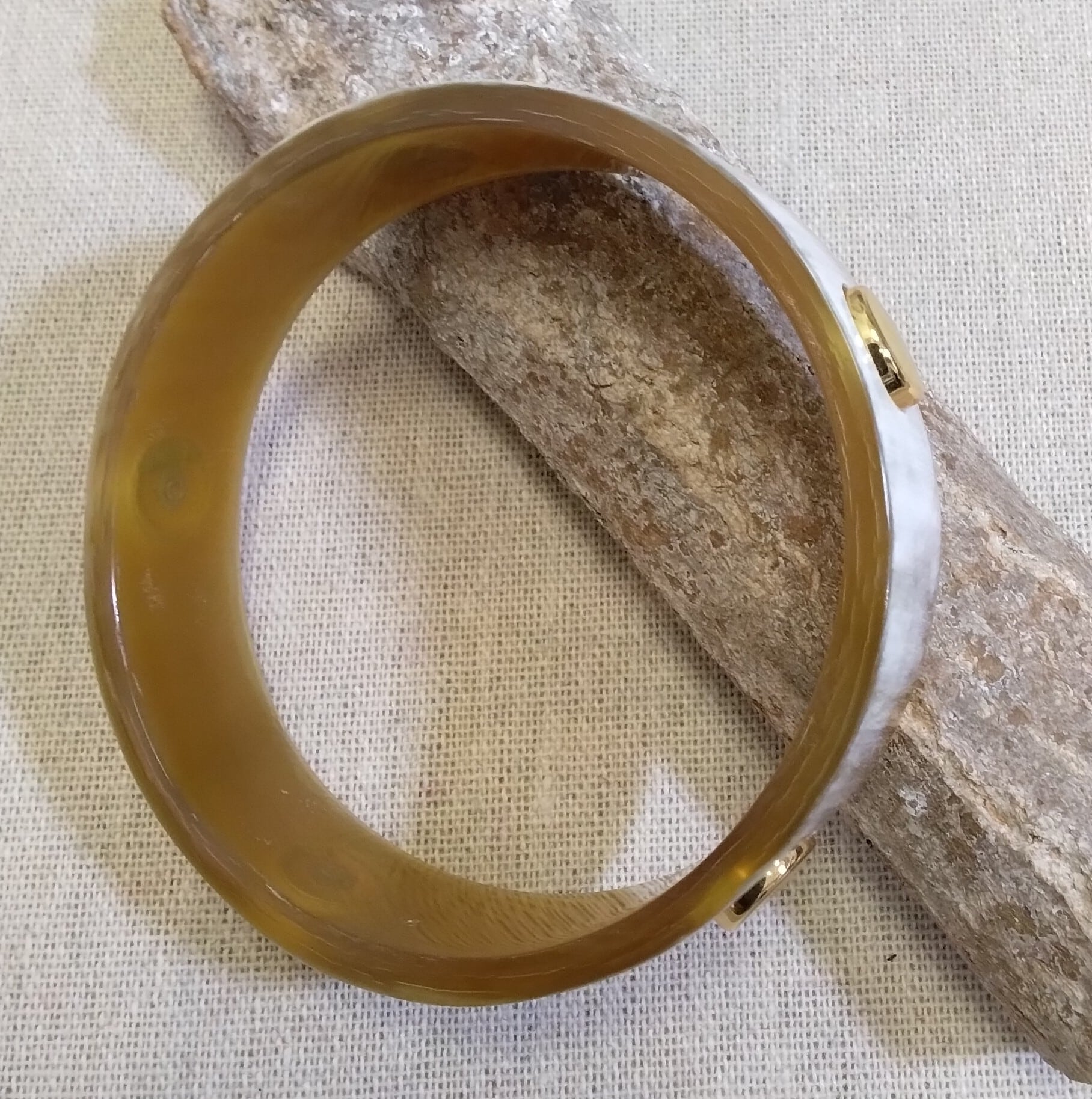 Le bracelet est en corne naturelle il est entièrement confectionné à la main.