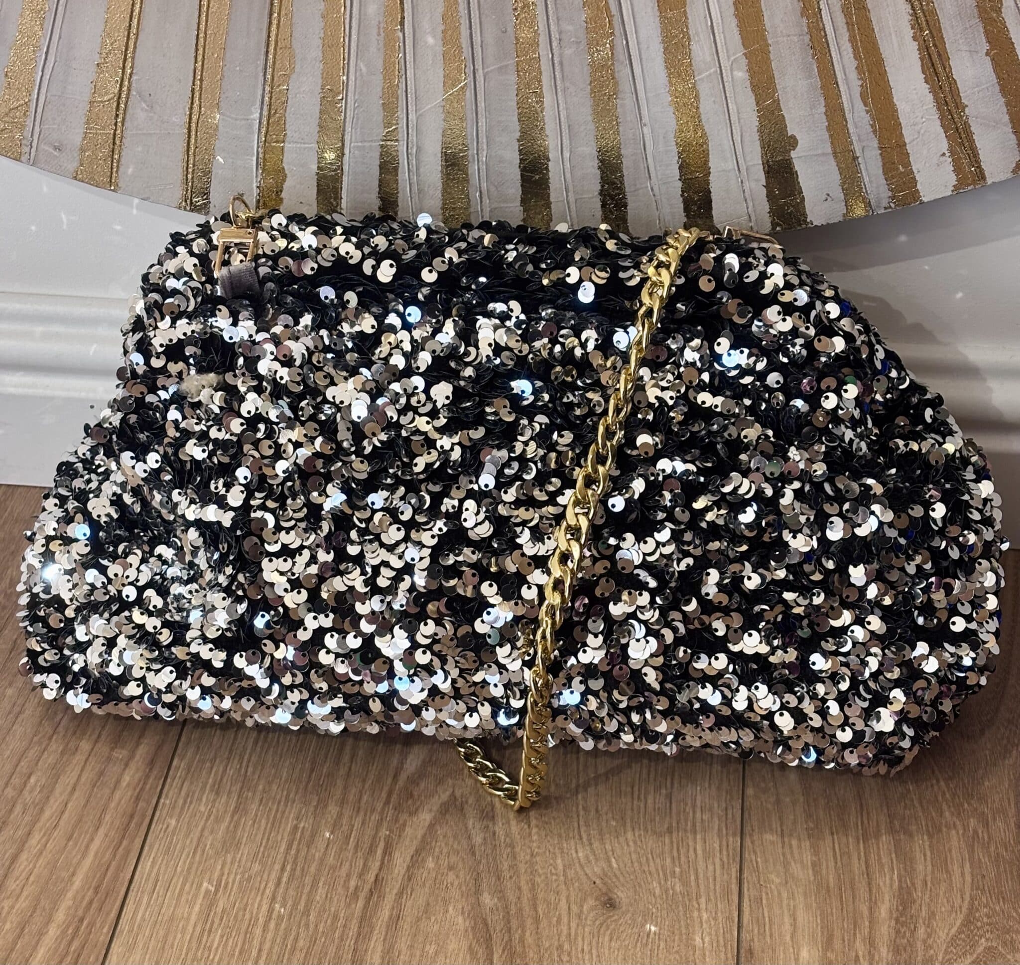 Le sac Nana de la créatrice Lilou apporte une touche lumineuse et originale à votre tenue grâce à son tissu en sequins scintillants. À la fois élégant et pratique, il accompagne facilement vos journées comme vos soirées.